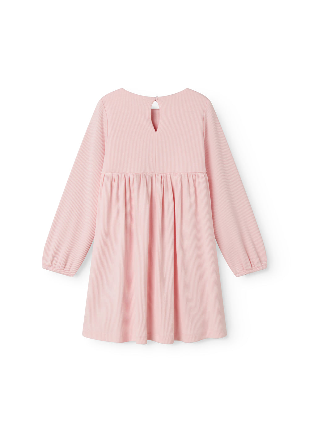 Langärmet lyserød ribstrikket kjole til børn
