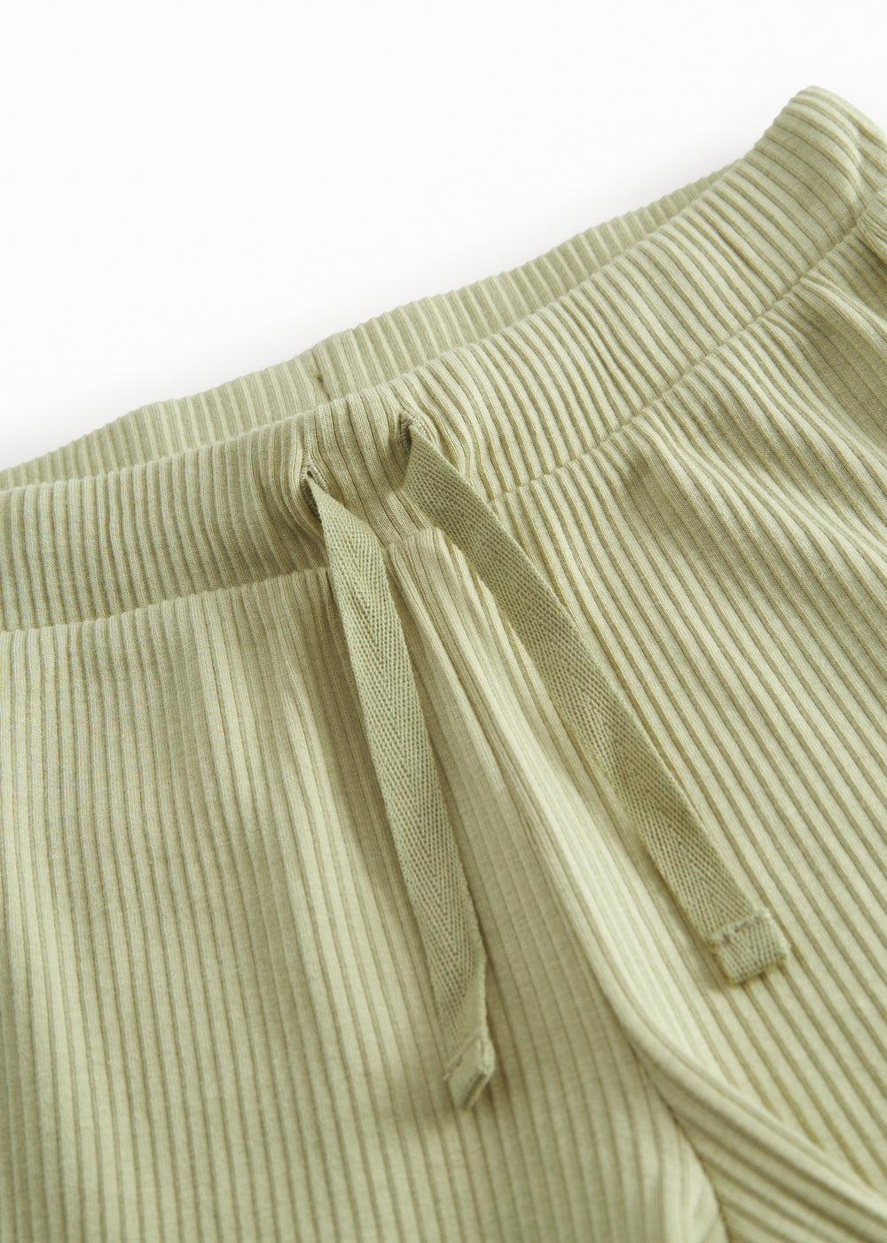 Lysegrøne ribstrikket modal shorts med bindebånd til børn