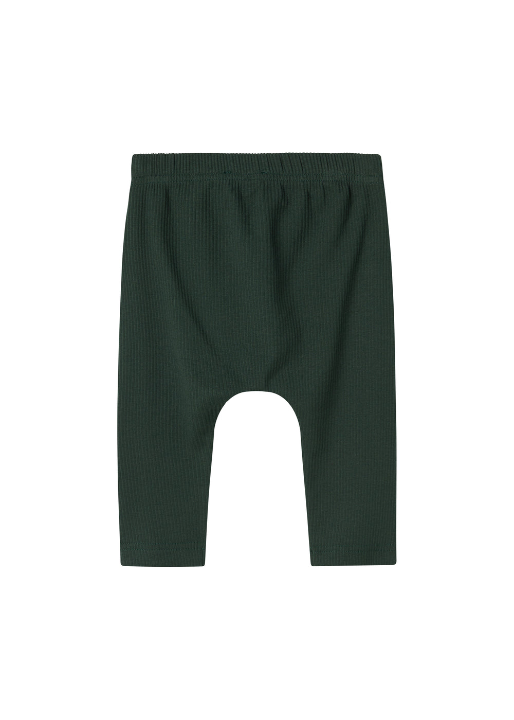 Baby pants with wide elastic and tie at the waist. The pants are ribbed, soft, stretchy and comfortable to wear.