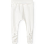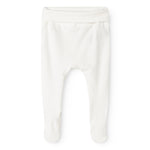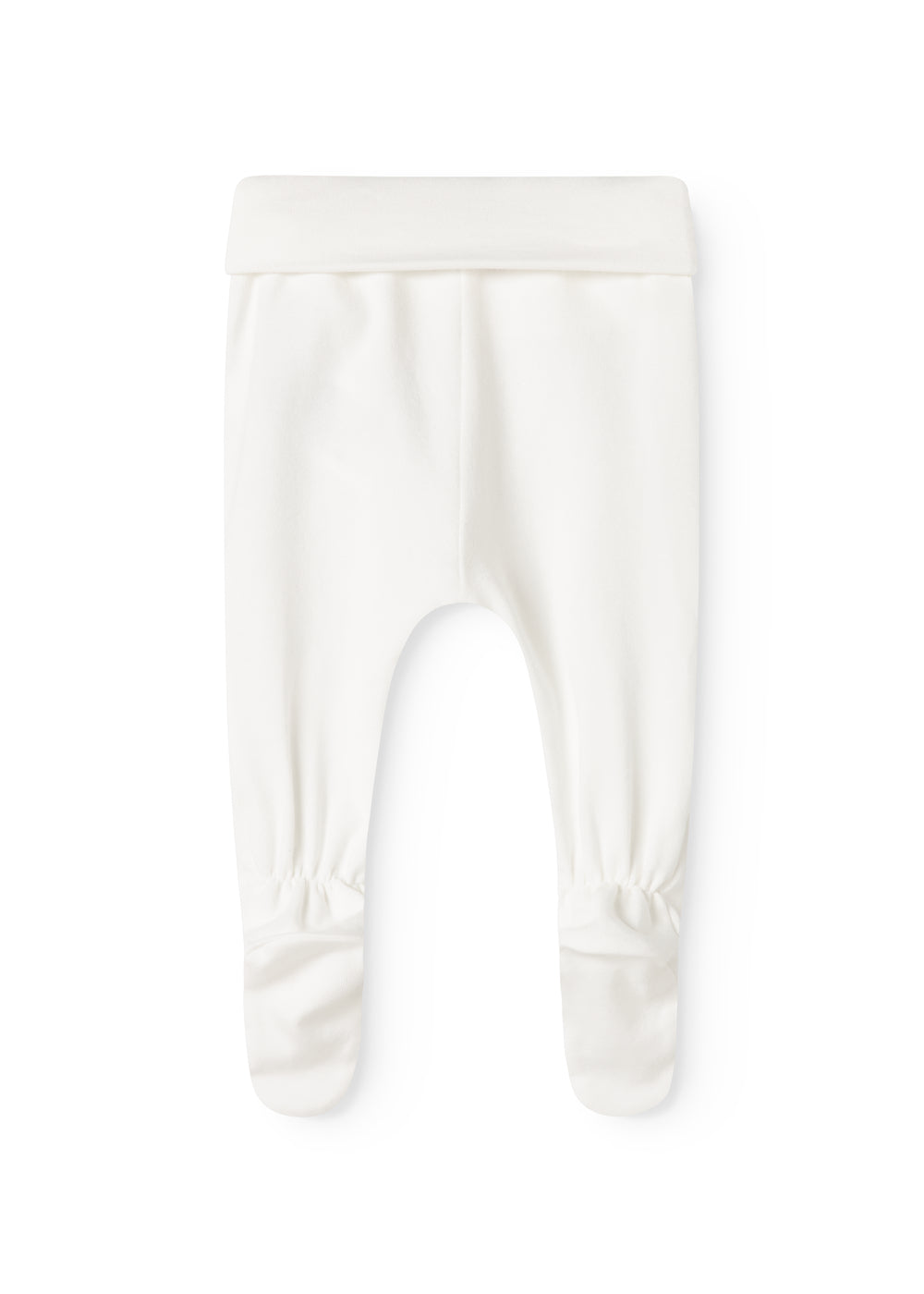 Comfortable pants with feet for newborns. The pants are soft, hold their shape and color, and have elastane in them, which makes them stretchy and comfortable to wear.