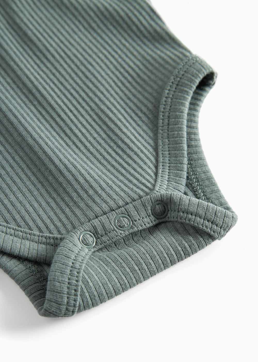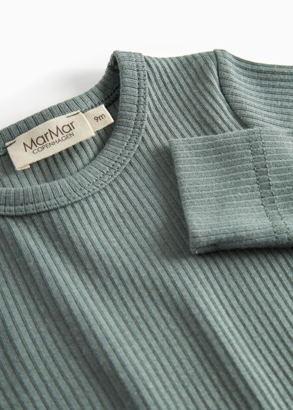 Simple long-sleeved baby modal bodystocking that closes between the legs for easy diaper changes. The bodystocking is ribbed, soft, holds shape and color and has elastane in it which makes it stretchy and comfortable to wear.