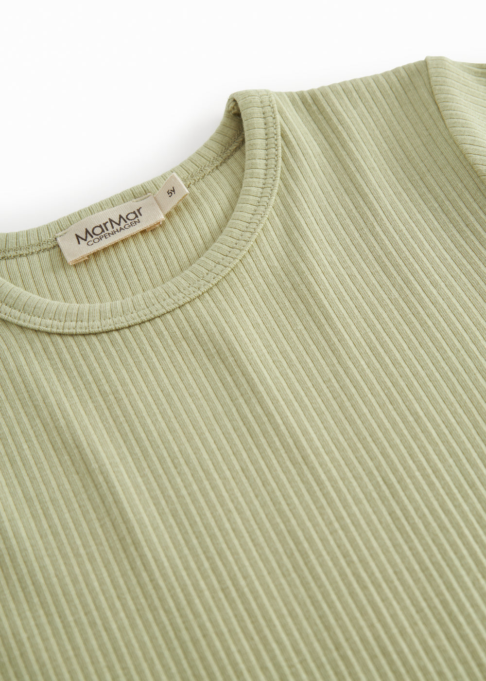 Simple short-sleeved modal t-shirt. The t-shirt is ribbed, soft, holds its shape and color and has elastane in it, which makes it stretchy and comfortable to wear.