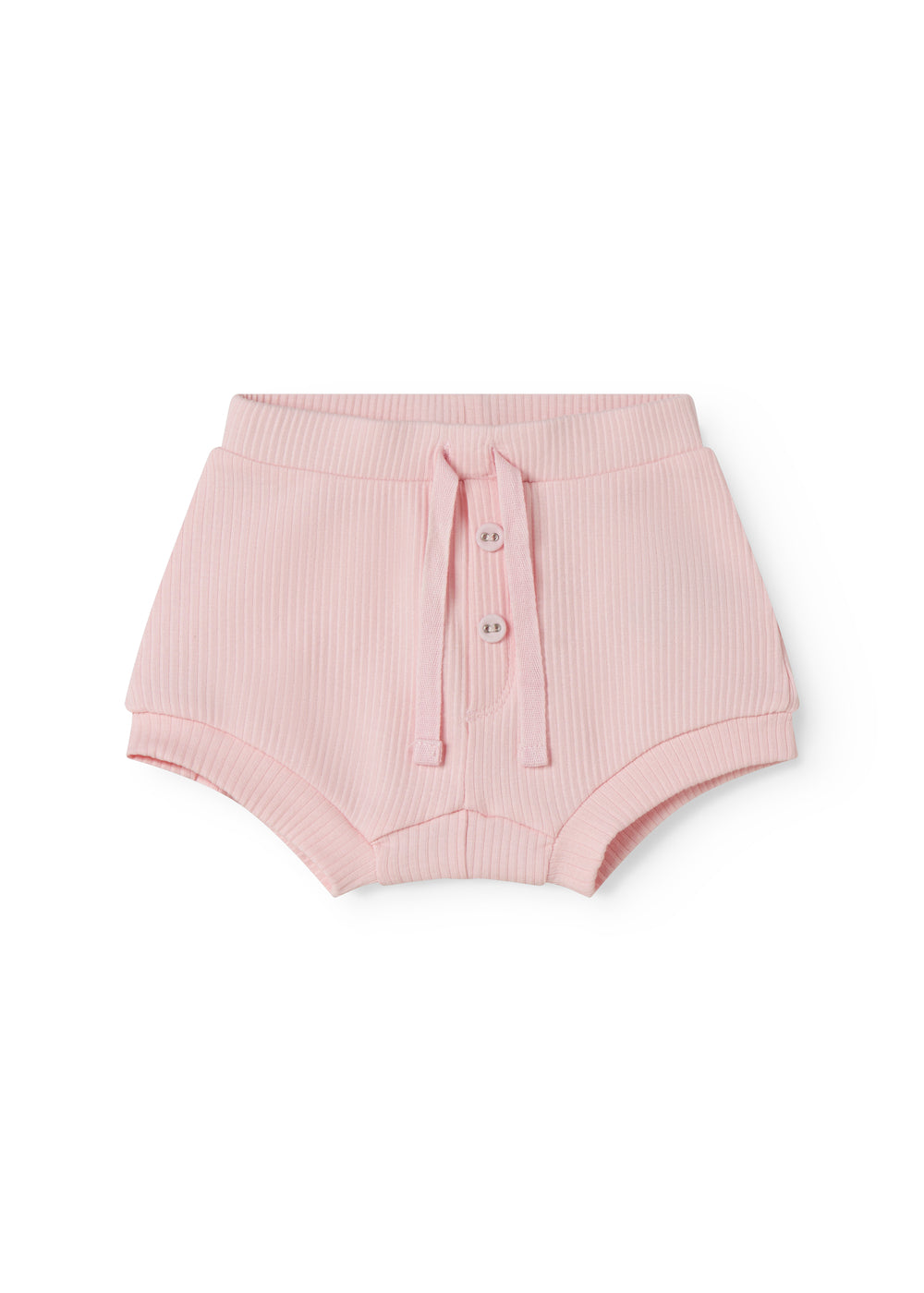 Small bloomers with a button placket and a decorative ribbon at the waist. The bloomers are ribbed, soft, hold their shape and color and have elastane in them which makes them stretchy and comfortable to wear.