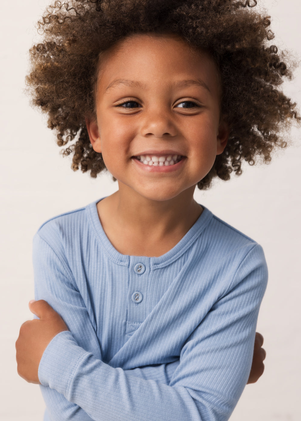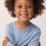 Long-sleeved modal t-shirt for children with placket button closure. The t-shirt is ribbed, soft, holds its shape and color and has elastane in it, which makes it stretchy and comfortable to wear.