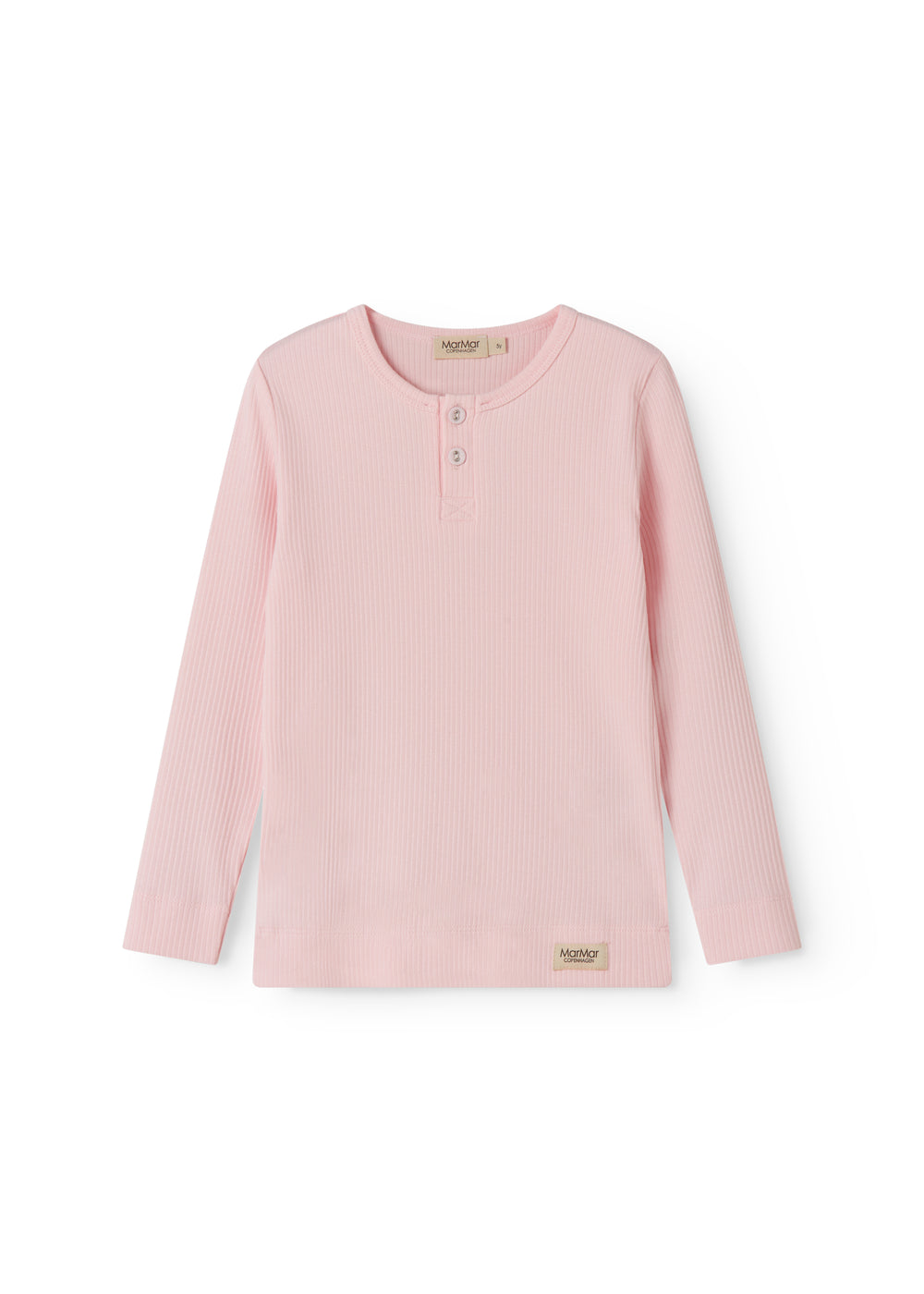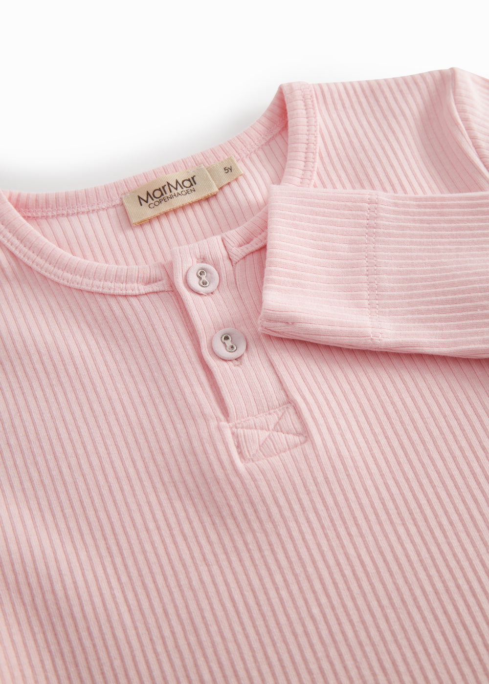 Langærmet lyserød modal t-shirt til børn med stolpe knaplukning