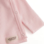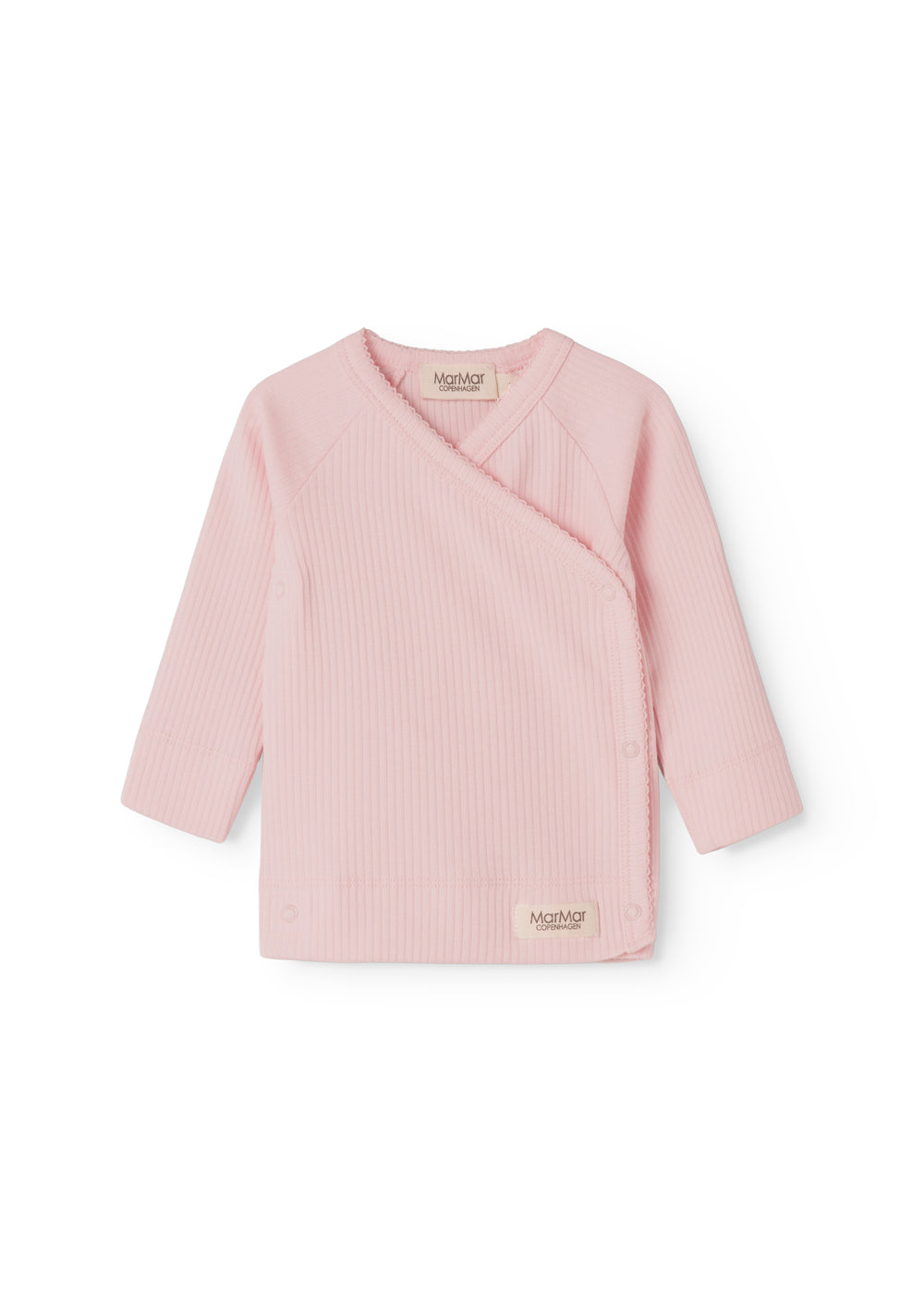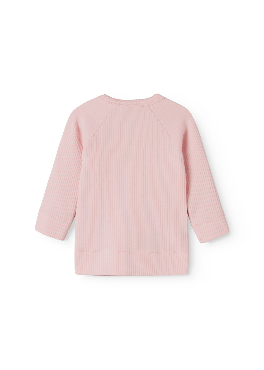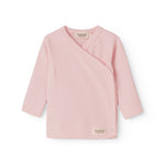 Long-sleeved blouse for newborns with a wrap-around closure. The blouse closes with snaps and is soft, stretchy and comfortable to wear.