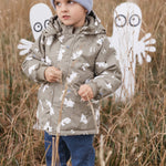 We use Thermolite which is a polyester insulating material. It is light and fluffy which allows air to circulate around your child’s body. This regulates the child’s body temperature keeping it comfortably warm. All our pockets are lined in match colour soft polyester fleece.
