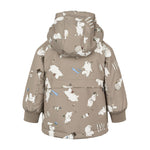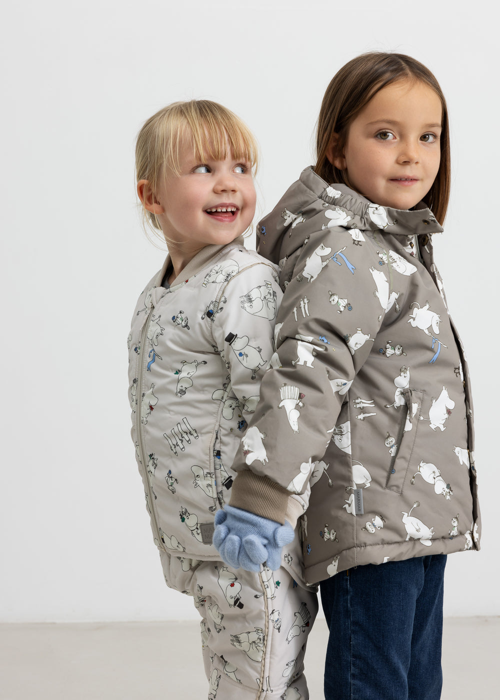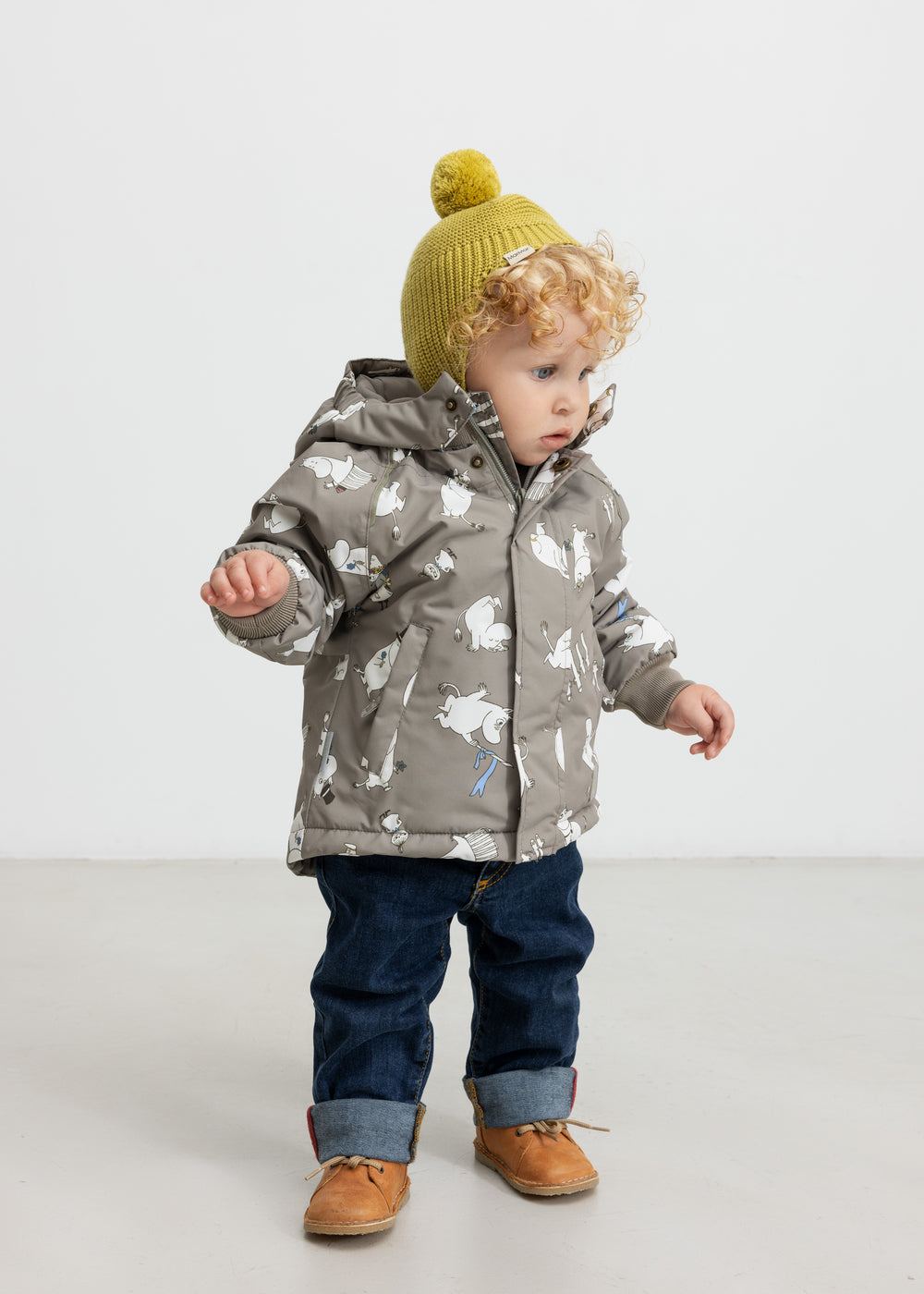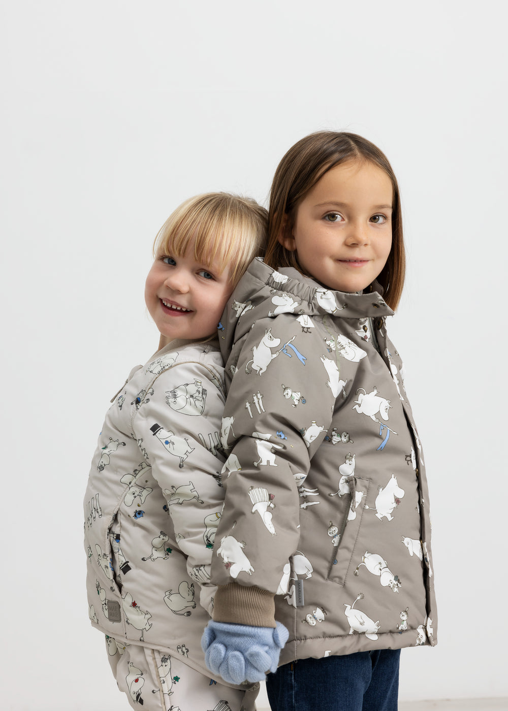 Winter jacket for the little ones with Moomin print that is both warm, windproof and waterproof. The winter jacket feels very light and soft on the body. The jacket has two zipper pockets, closes with a zipper and press studs at the front and a removable hood. The jacket is perfect winter outerwear in durable material and with thermolite insulation that ensures a warm and temperate body temperature.