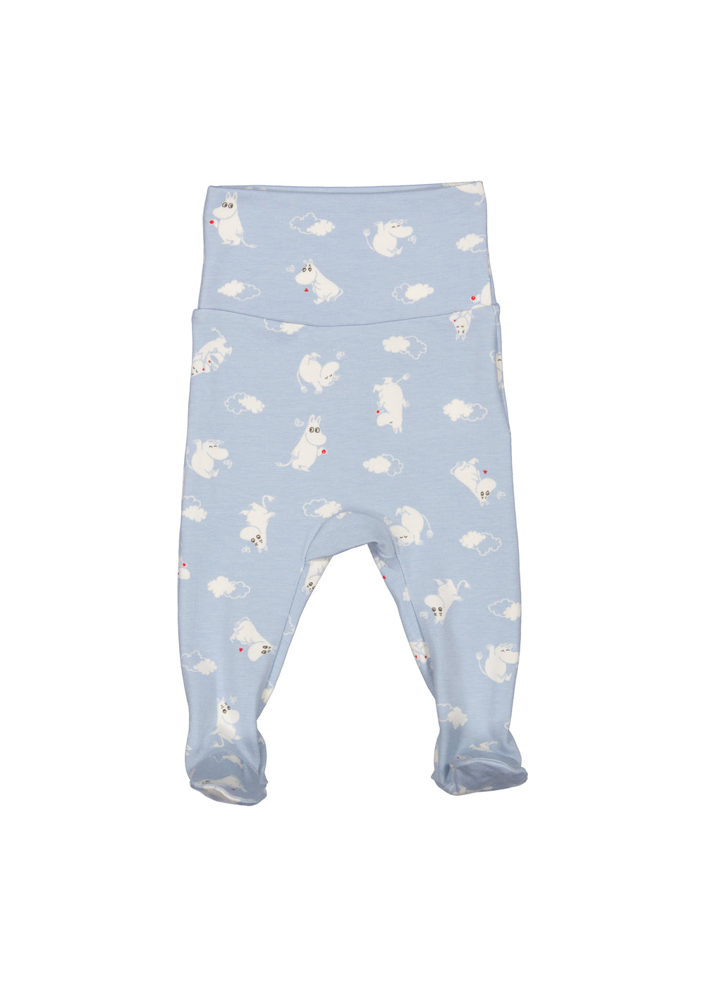 Comfortable pants with feet for newborns with a cute Moomin print. The pants are soft, stretchy and comfortable to wear.