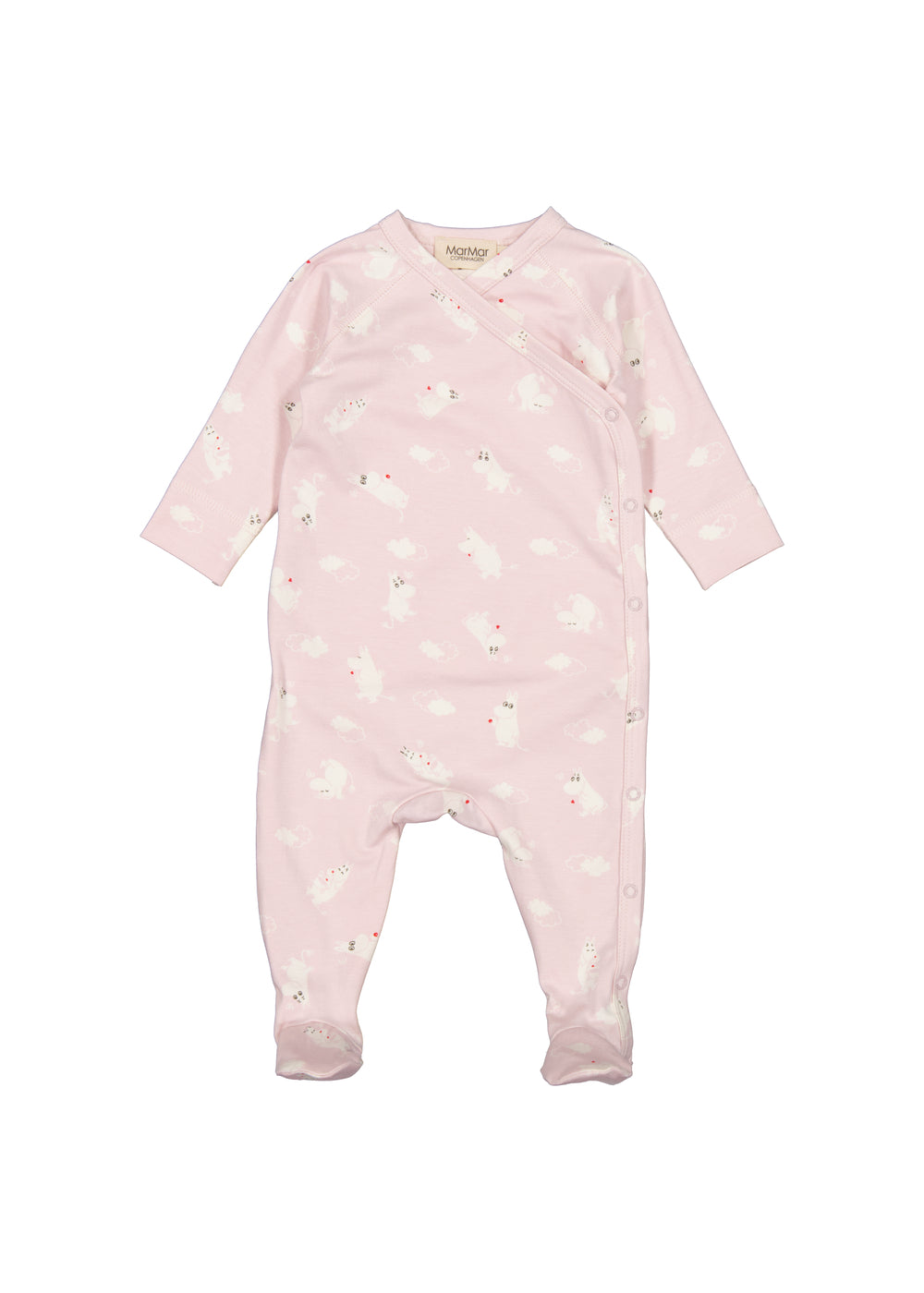 Long-sleeved jumpsuit with feet for the little ones in a cute dolphin print. The jumpsuit has a wrap-around closure and closes with snaps from the neck and down one leg. The jumpsuit is soft, stretchy and comfortable to wear.
