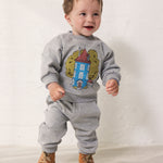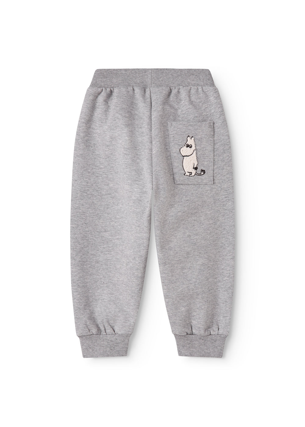 Baby sweatpants in a looser fit with elastic and ties, two side pockets and one back pocket. The sweatpants have a nice Moomin print, a soft brushed inside, are stretchy and comfortable to wear.