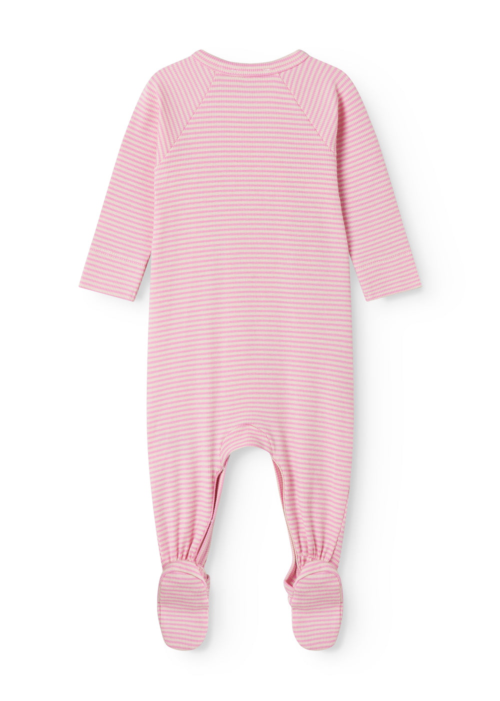 Langärmet baby heldragt med fødder og lyserøde striber