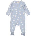 Long-sleeved jumpsuit with feet for the little ones in a cute dolphin print. The jumpsuit has a wrap-around closure and closes with snaps from the neck and down one leg. The jumpsuit is soft, stretchy and comfortable to wear.