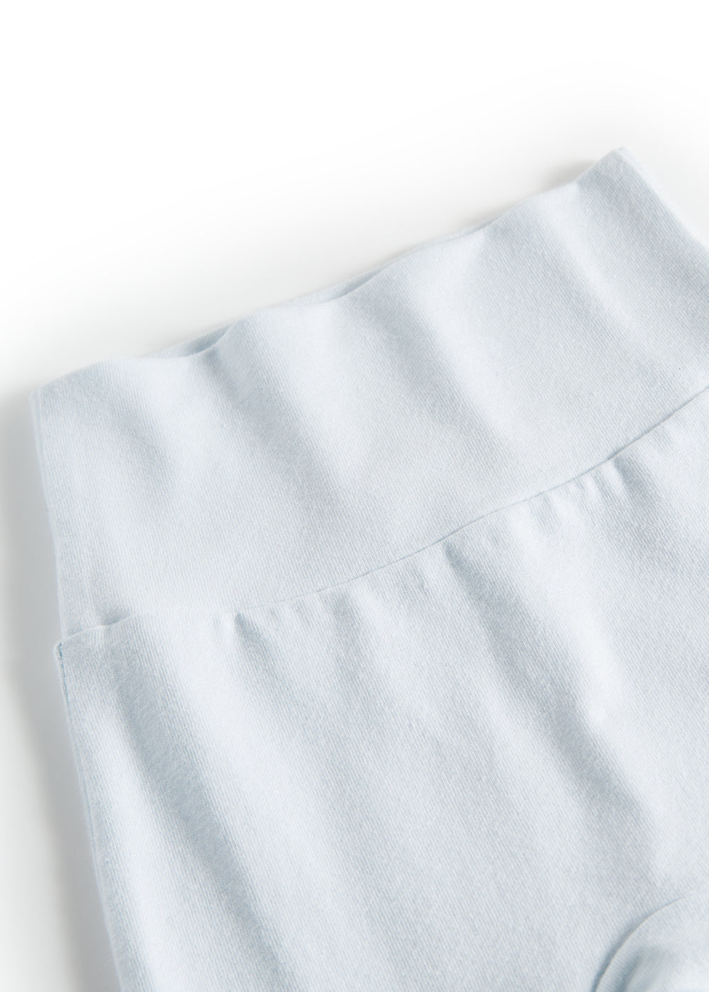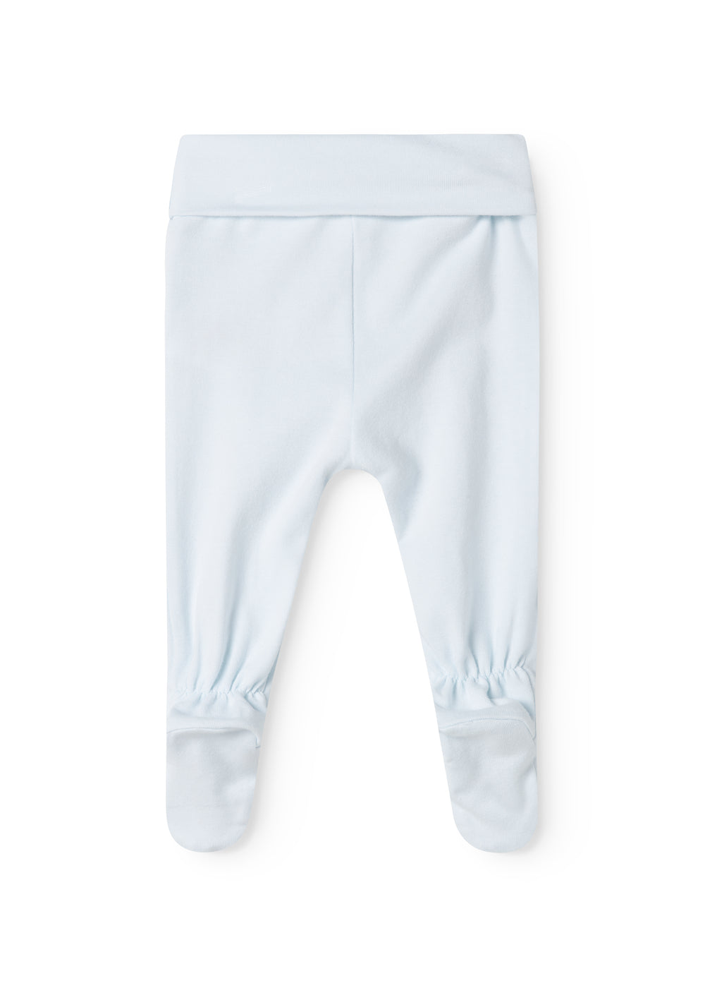 Comfortable pants with feet for newborns. The pants are soft, hold their shape and color, and have elastane in them, which makes them stretchy and comfortable to wear.