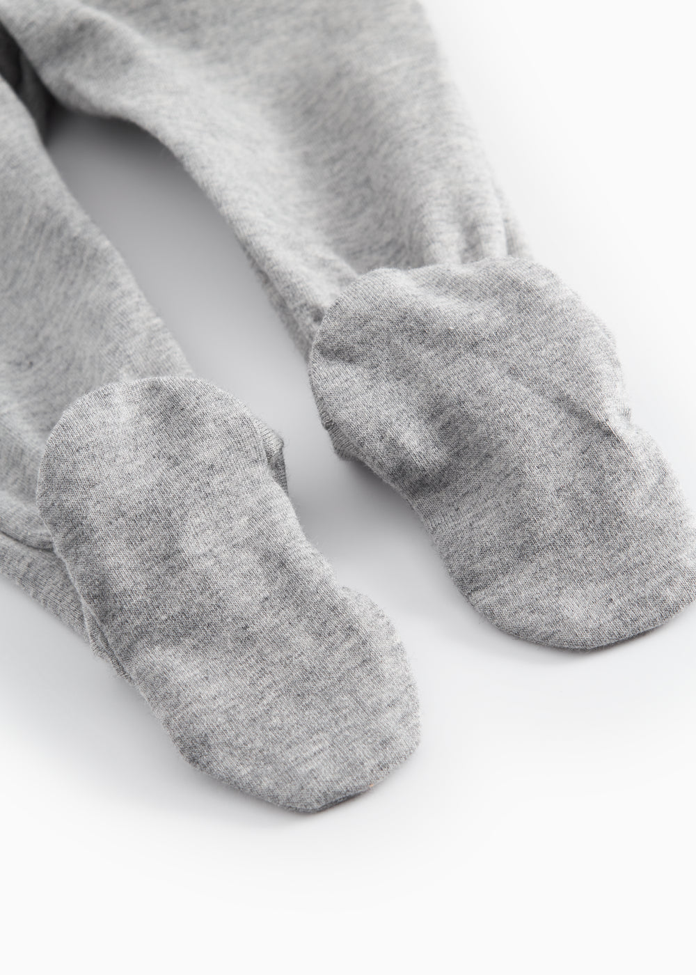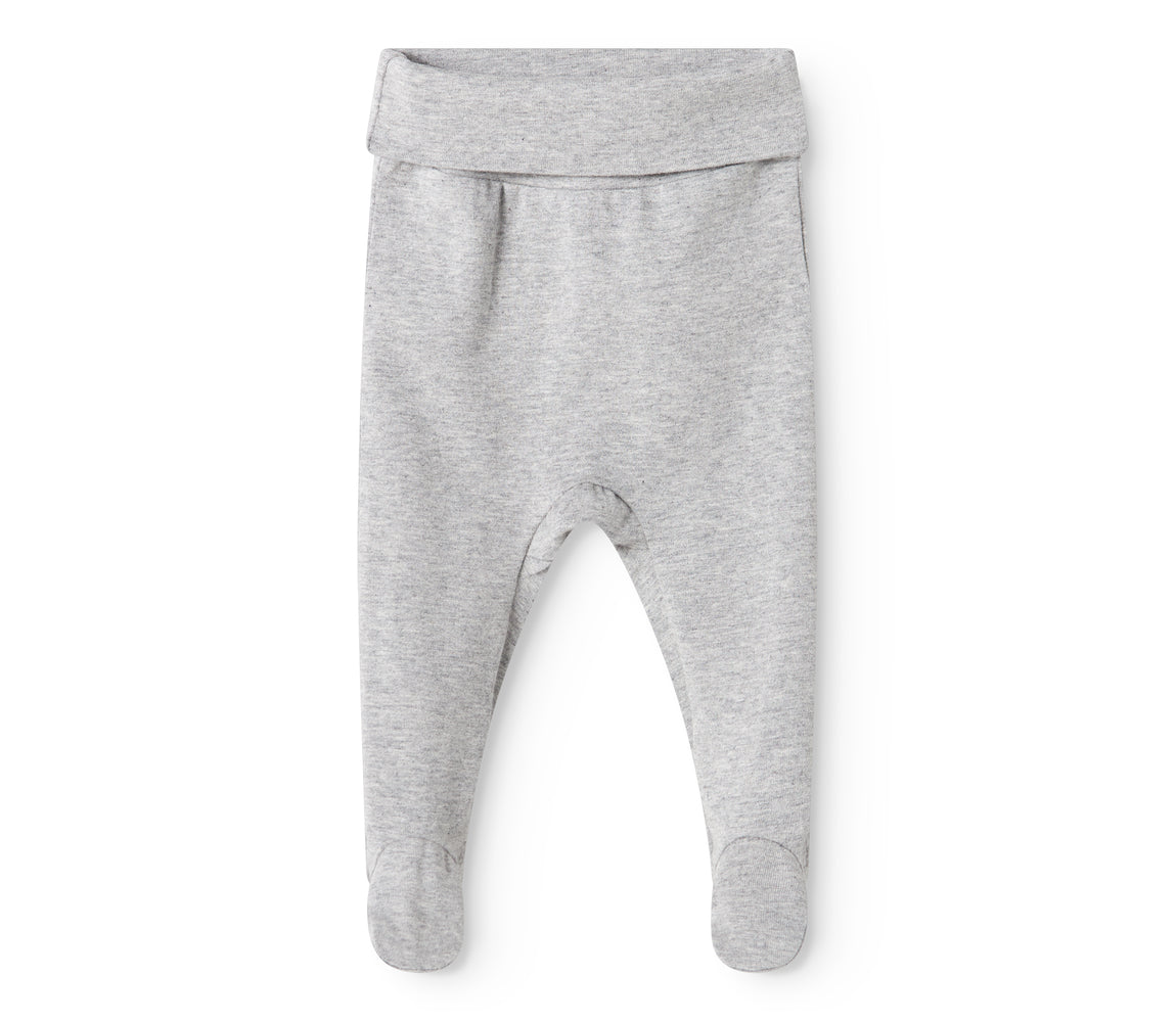 Comfortable pants with feet for newborns. The pants are soft, hold their shape and color, and have elastane in them, which makes them stretchy and comfortable to wear.