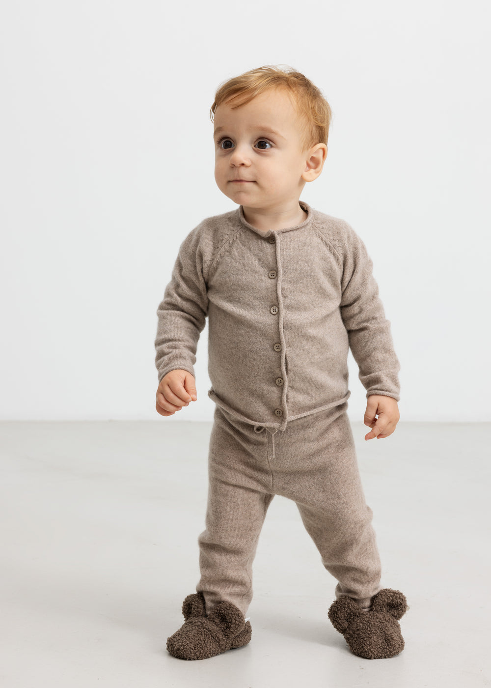 Cashmere pants for baby with elastic and tie at the waist. The cashmere pants are ultra soft, warm and comfortable to wear and perfect for the colder days.