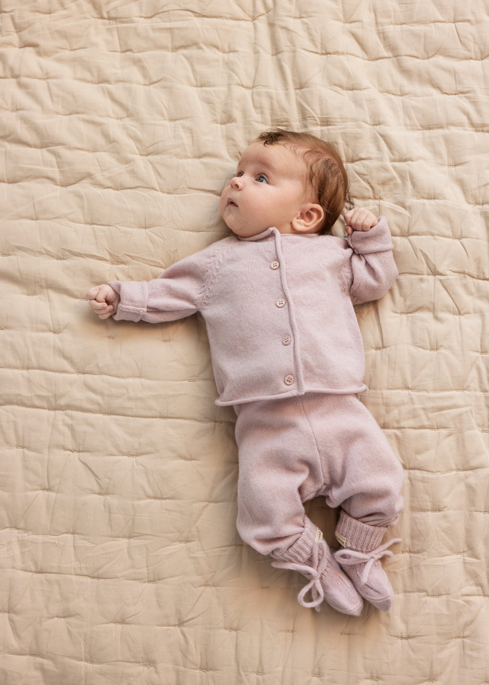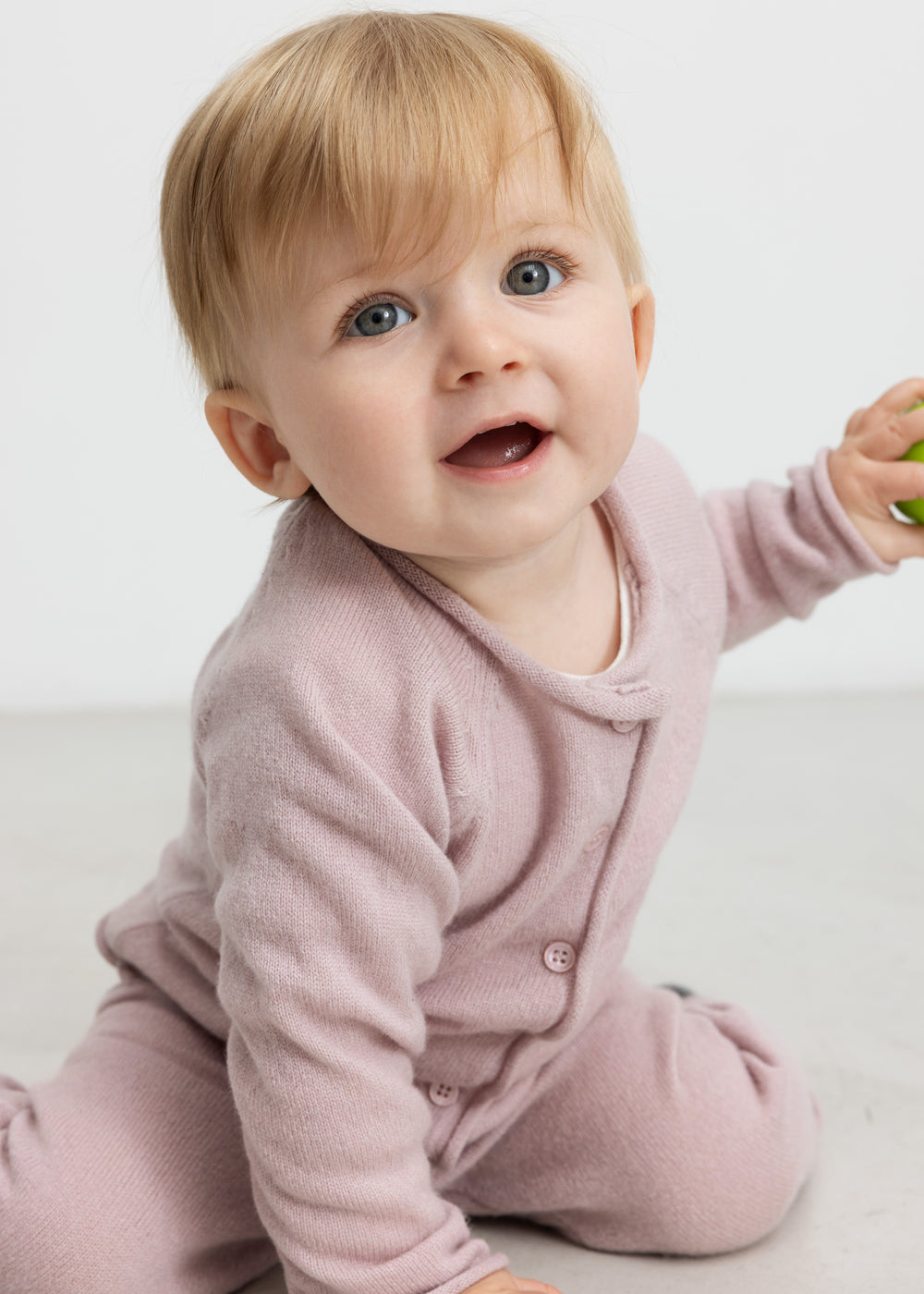 Cashmere cardigan for baby with button closure, rolled hem and raglan sleeves. The cashmere cardigan is ultra soft, warm and comfortable to wear and perfect for the colder days.