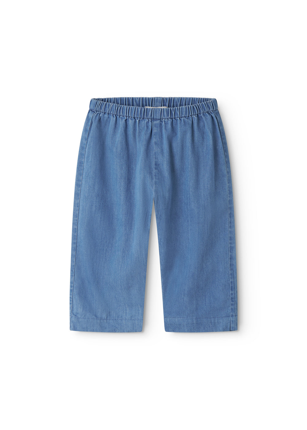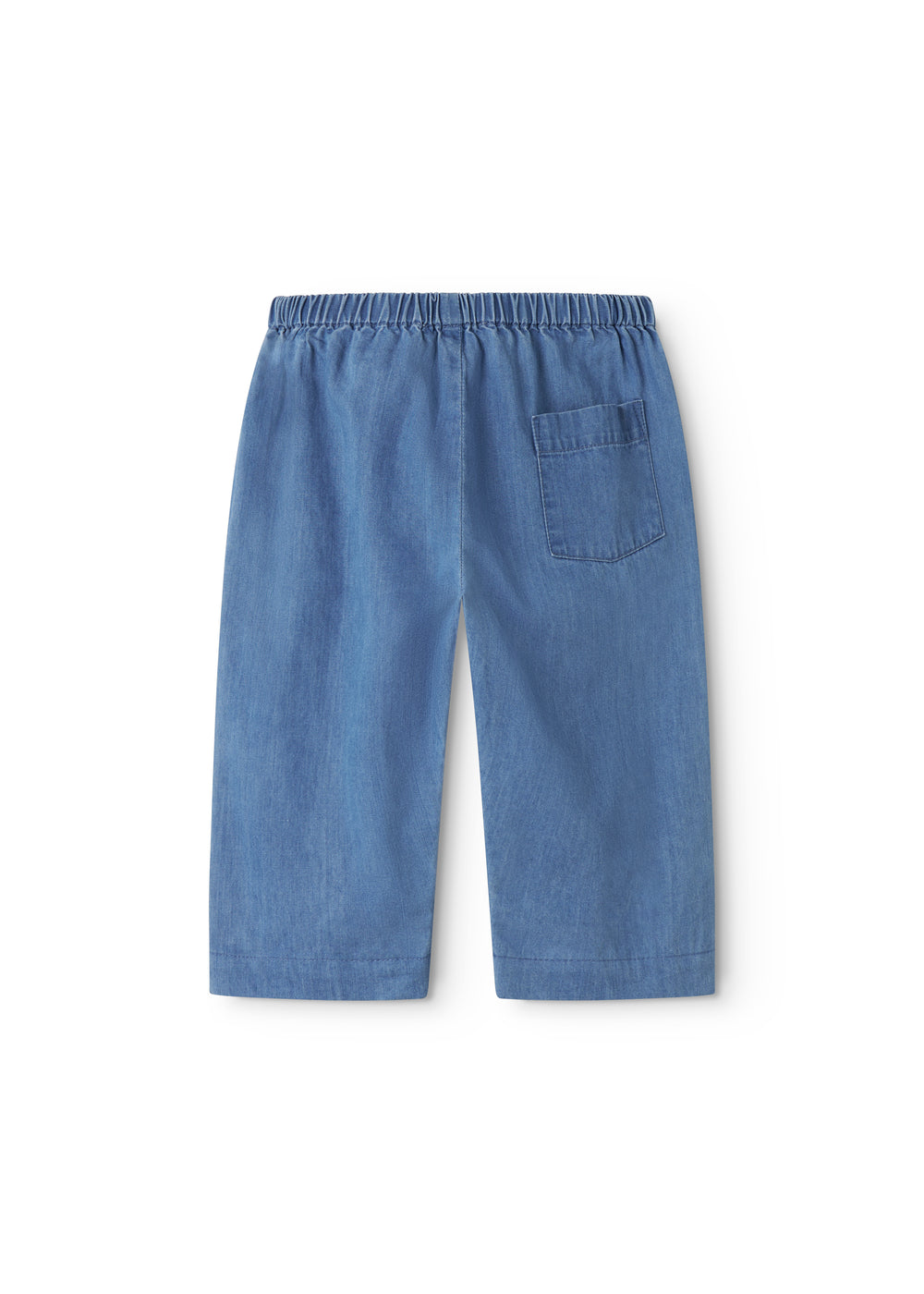 Comfortable denim pants with a loose fit, a back pocket and elastic waist. The pants are made of soft cotton with a delicate texture.