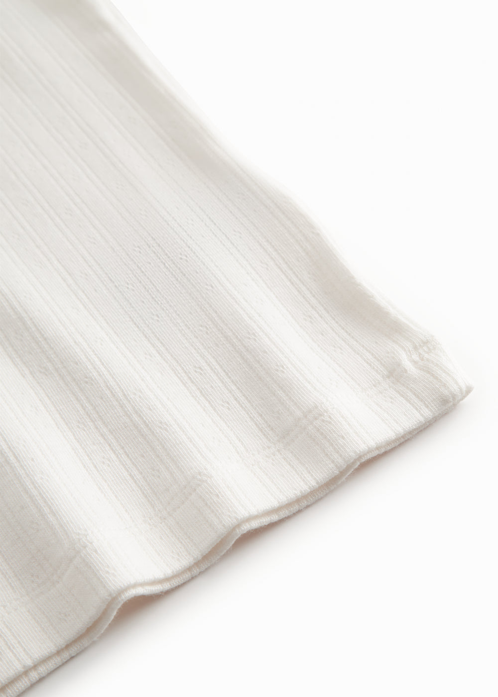 Simple short-sleeved pointelle t-shirt for children. The t-shirt is soft, stretchy and comfortable to wear.