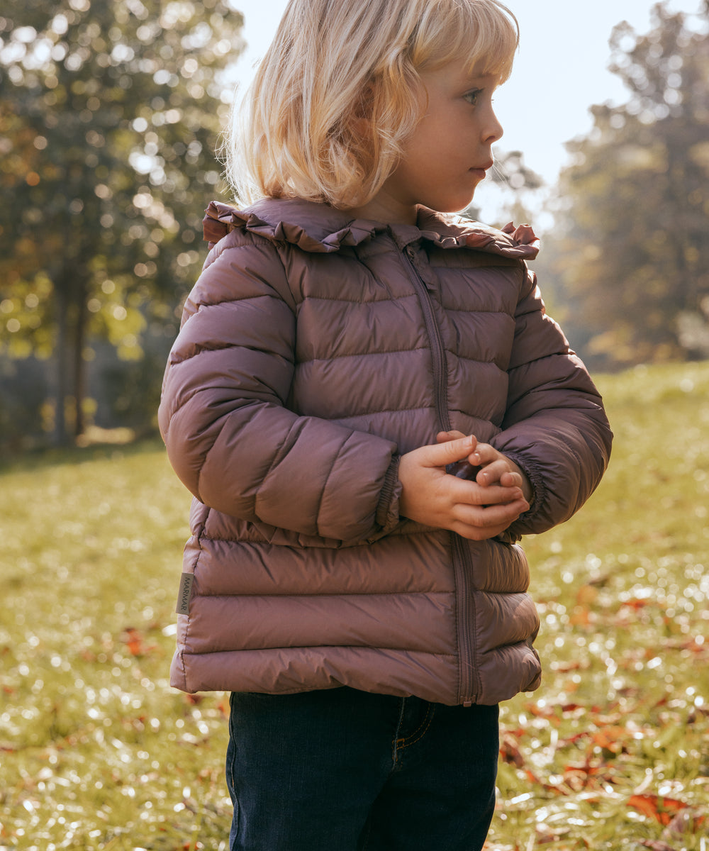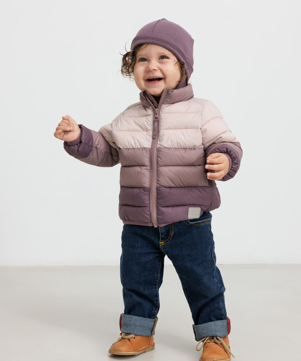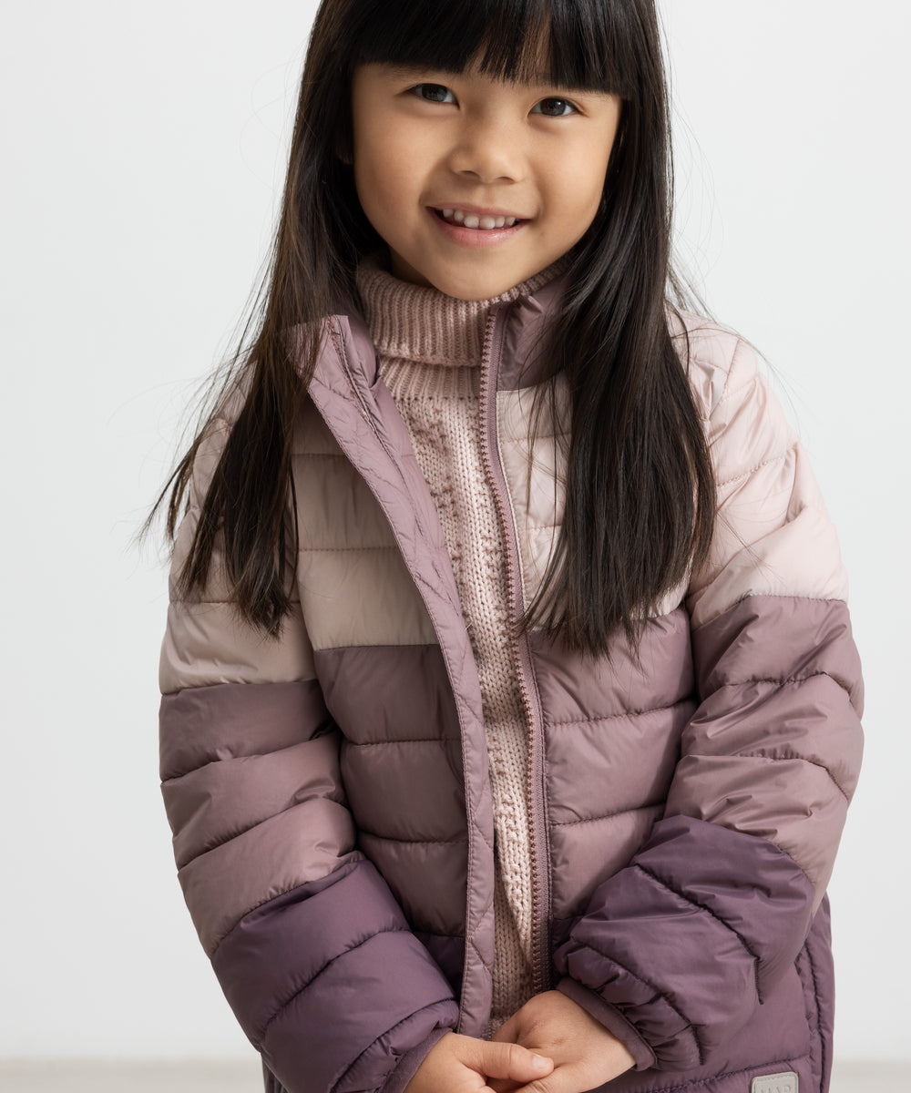 Owe Jacket, Vegan Down Jacket - Plum Shadow Block