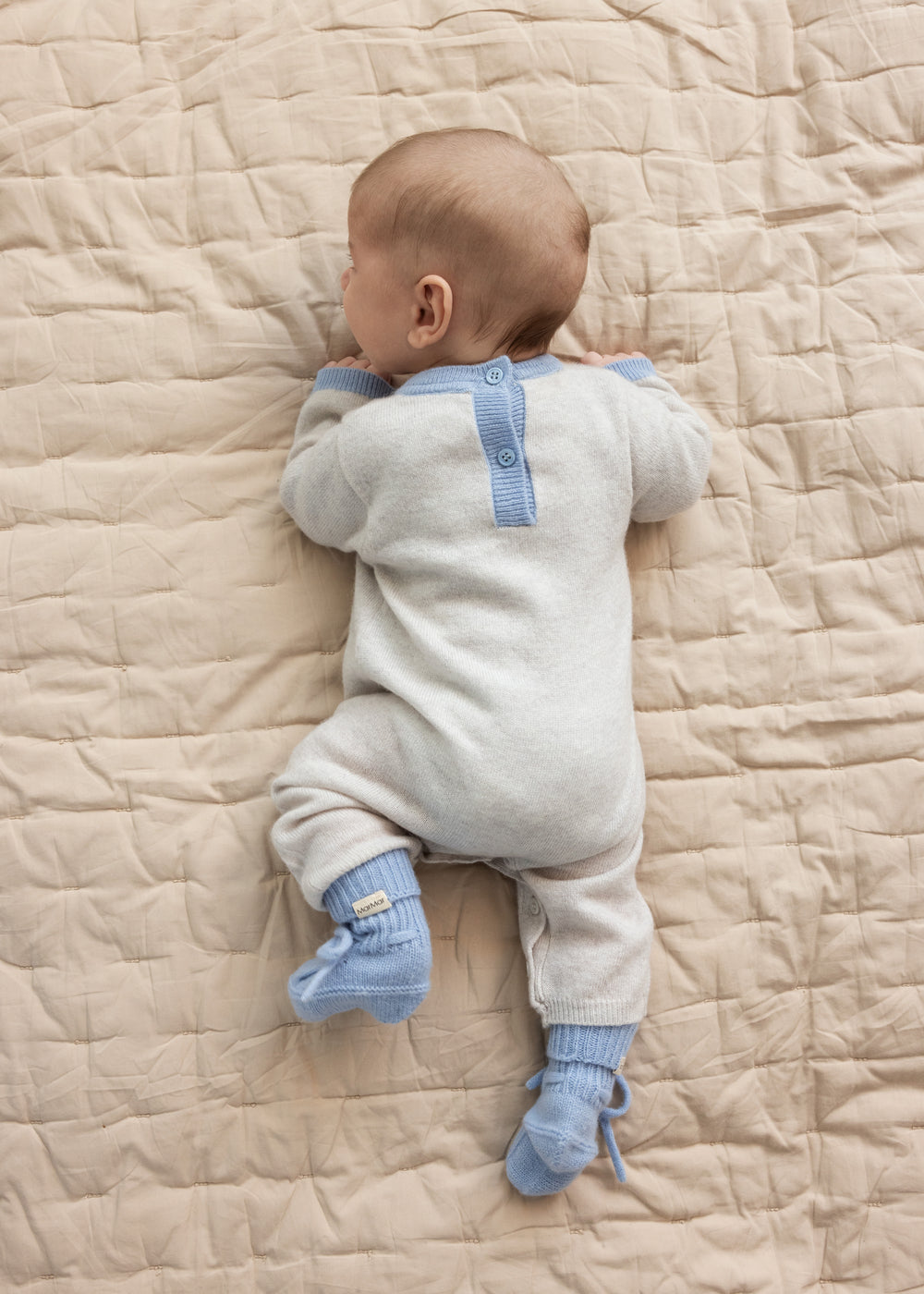 Small, soft and warm cashmere booties with ties for baby. The cashmere booties are ultra soft, warm and comfortable to wear and perfect for the colder days.
