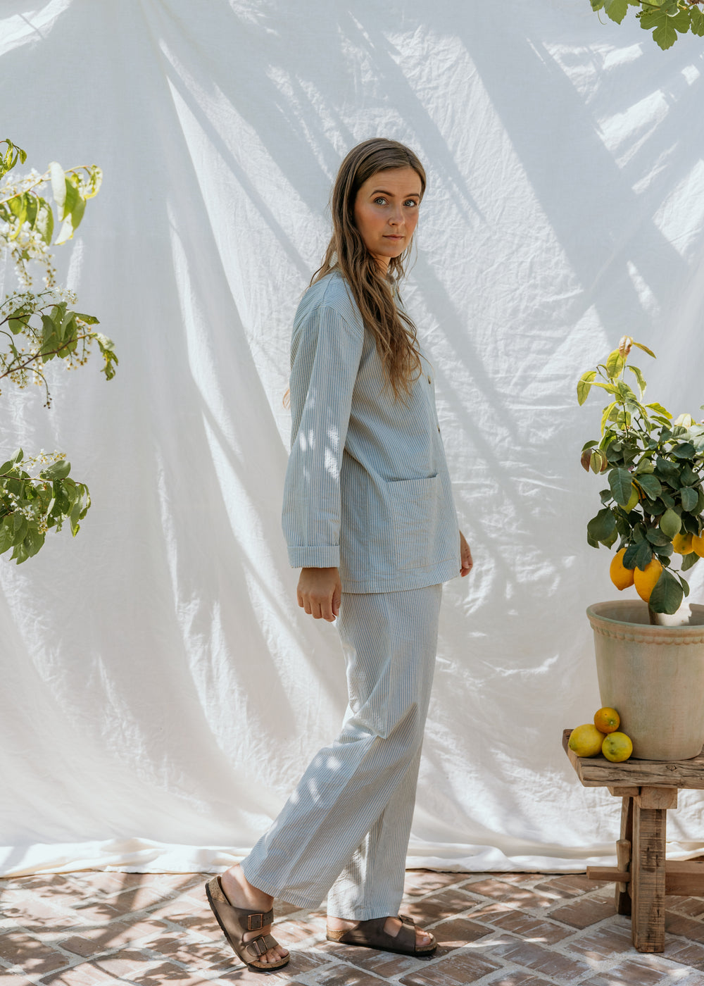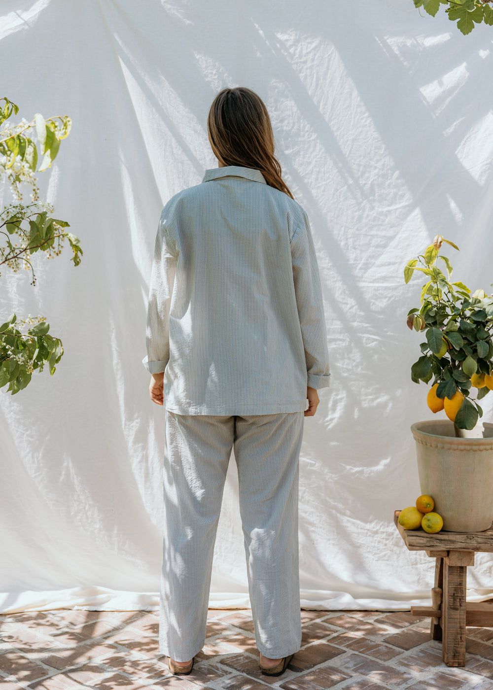 Pajama Set W, Pajama Set - Blue Stone Stripe