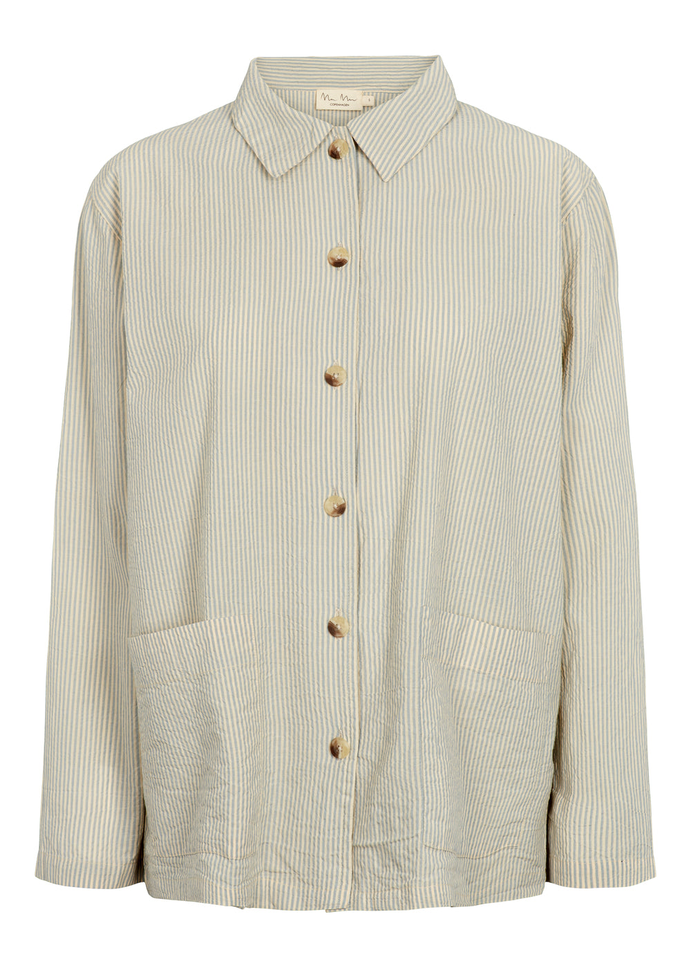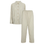 Pajama set with shirt and pants in a loose fit. The shirt has button closure and two pockets at the front and the pants have elastic at the waist.