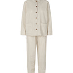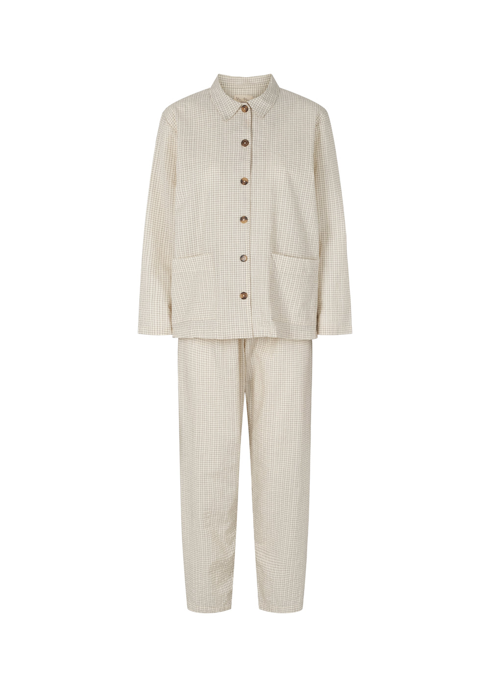 Pajama set with shirt and pants in a loose fit. The shirt has button closure and two pockets at the front and the pants have elastic at the waist.