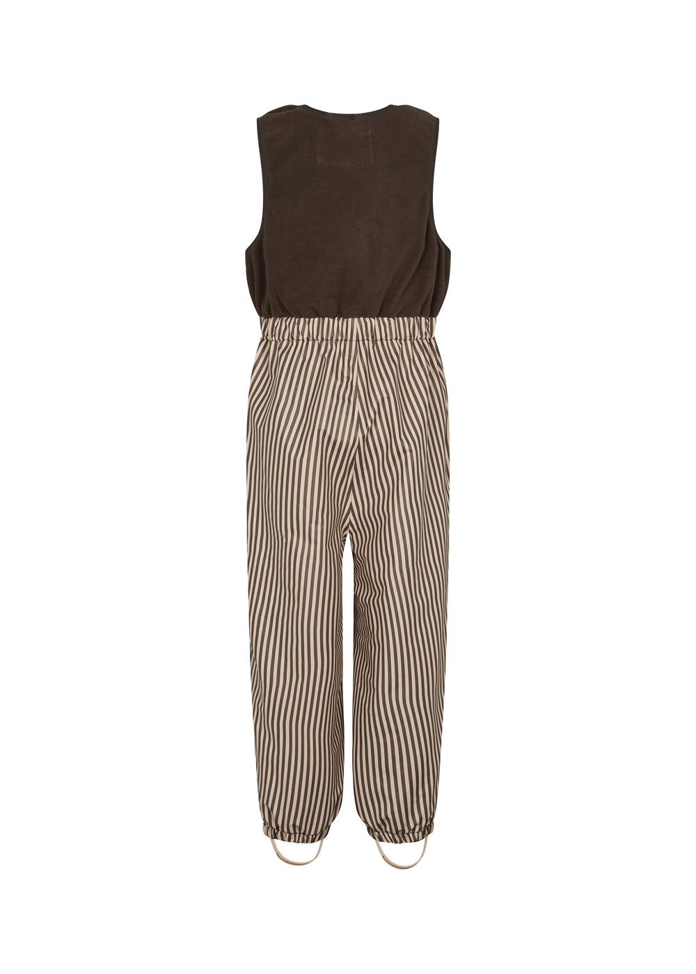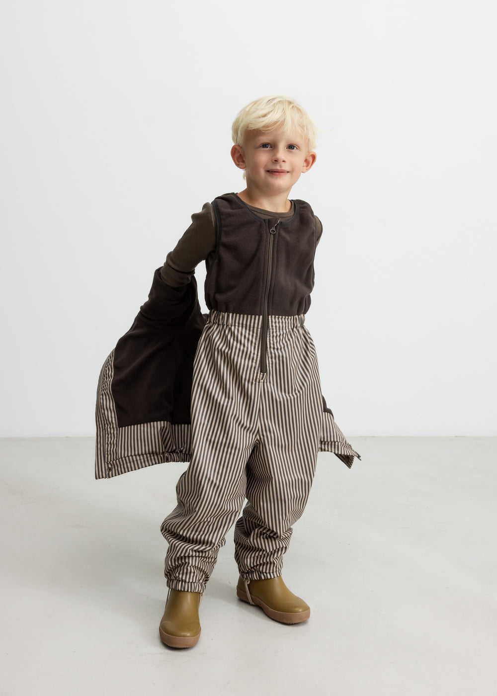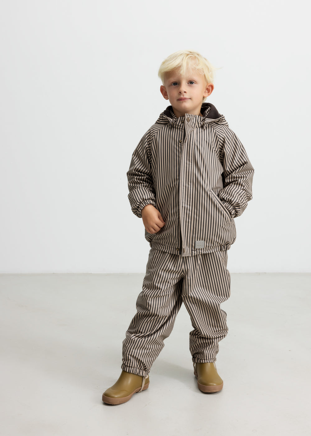 Regnsæt til børn i brun med striber, jakke og selebukser
