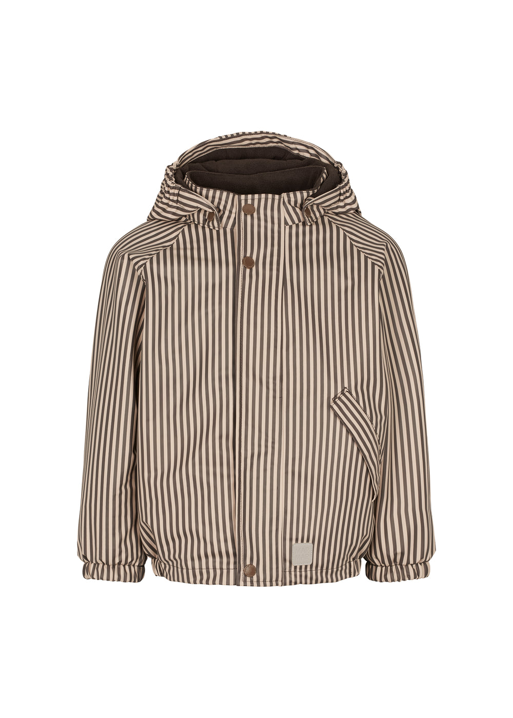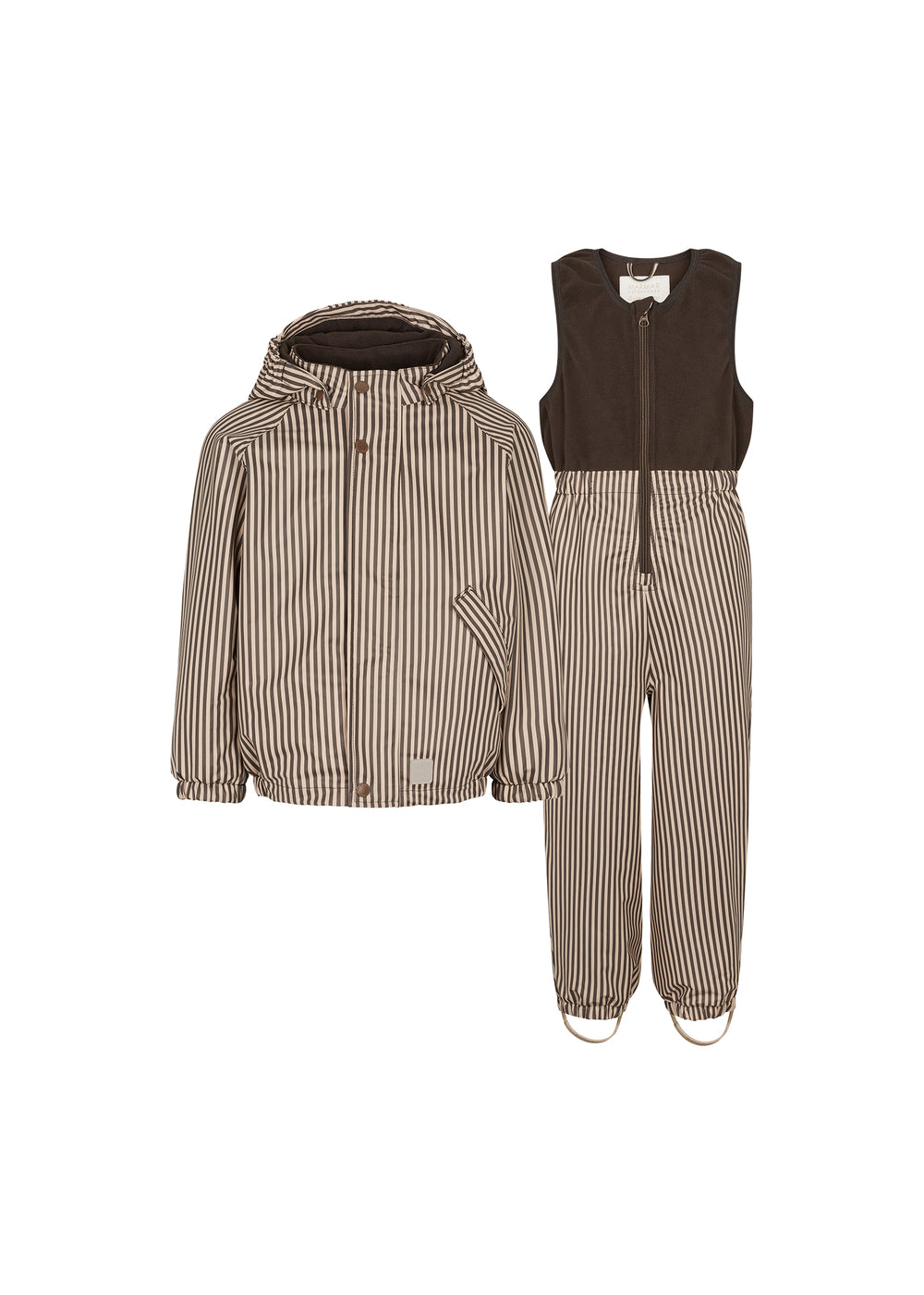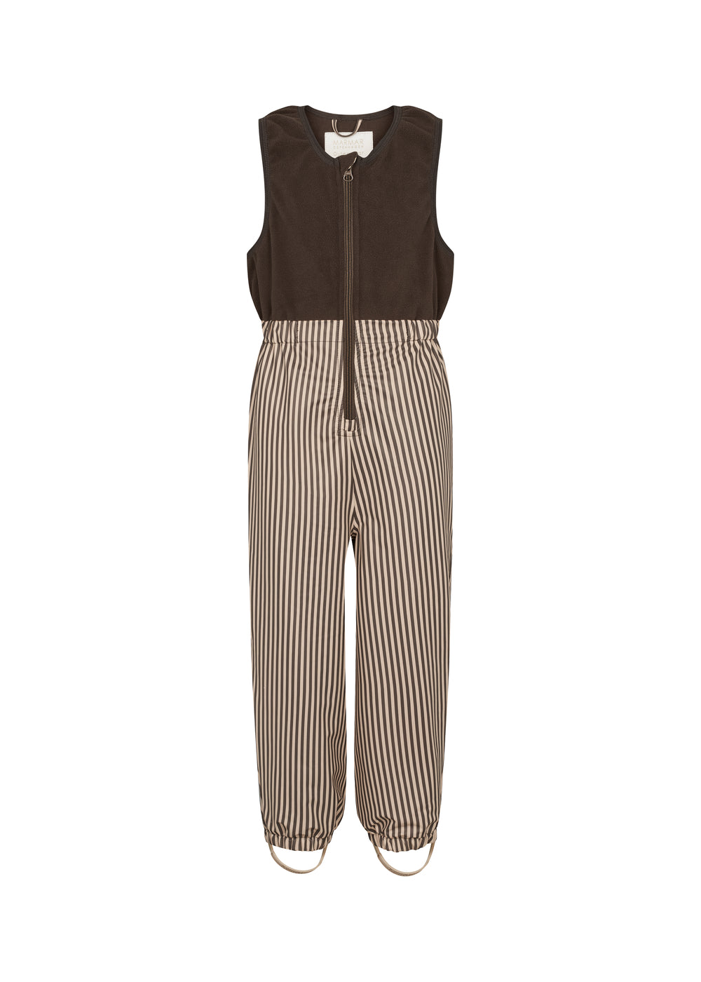 Regnsæt til børn i brun med striber, jakke og selebukser