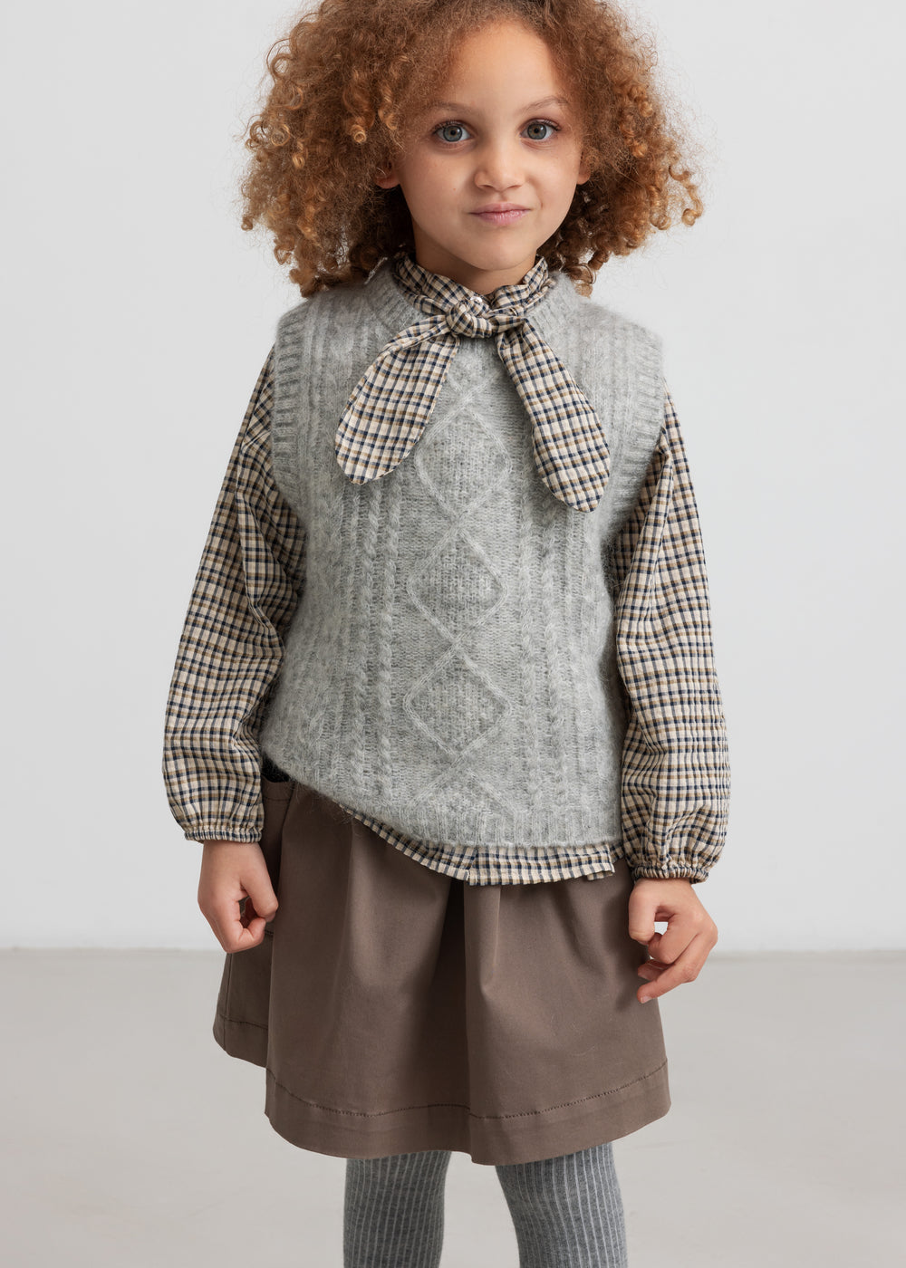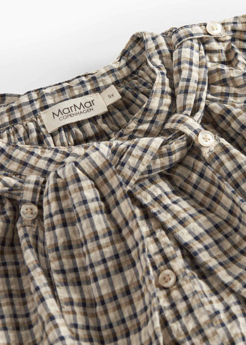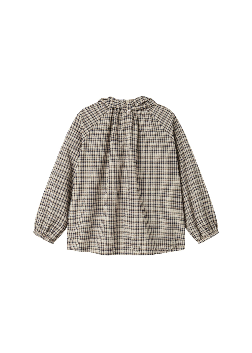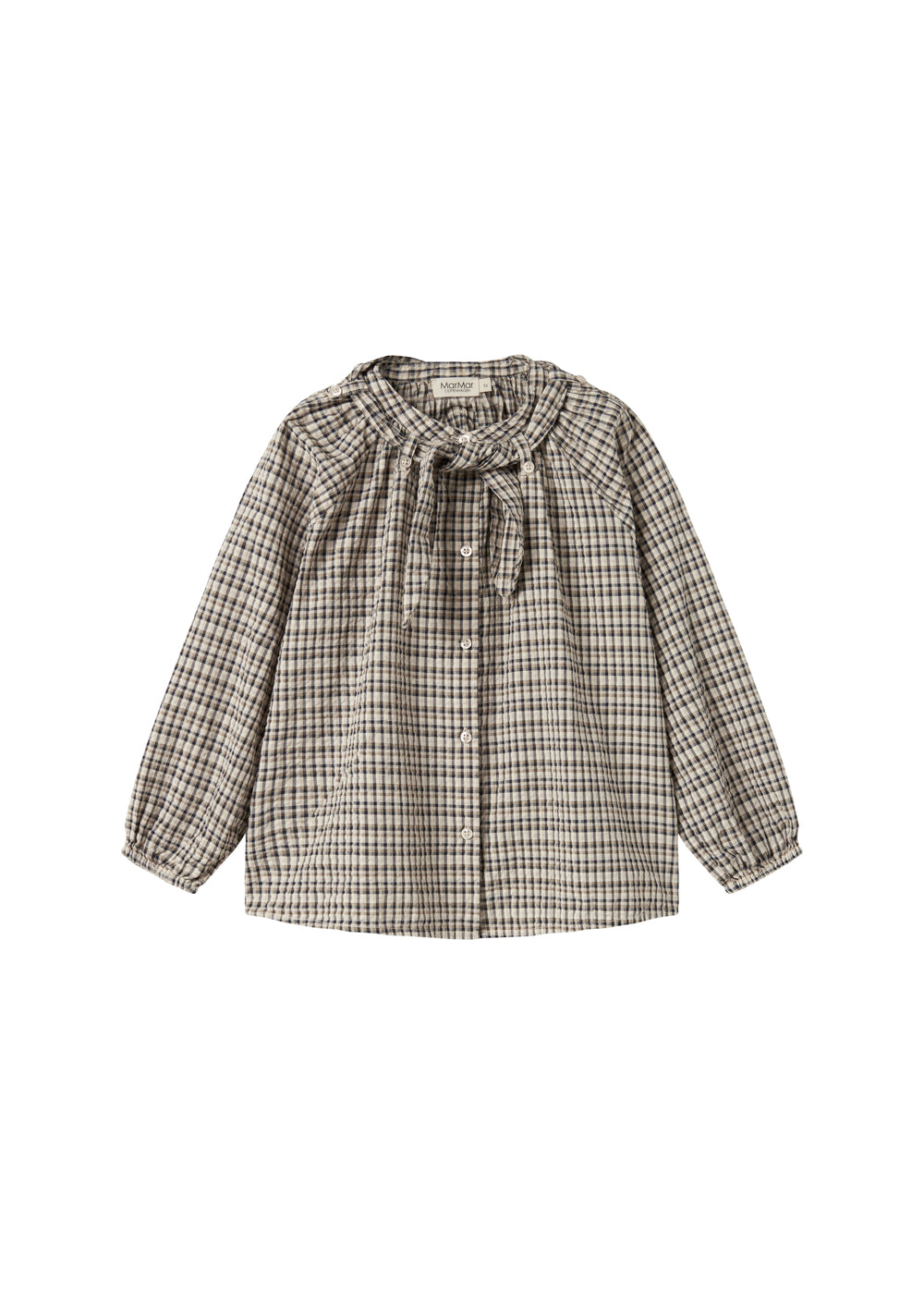 Long-sleeved shirt in crepe cotton with a nice removable neck bow that is fastened with buttons. The shirt closes with a button closure at the front and has a comfortable fit.