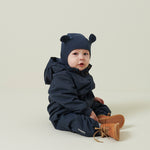 Spring suit for the little ones in a light, thin and soft material. The spring suit has two zippered pockets at the front, a good and comfortable fit and closes with a zipper and press studs at the front. The spring suit has a removable hood, adjustable foot straps and a name tag on the inside.