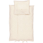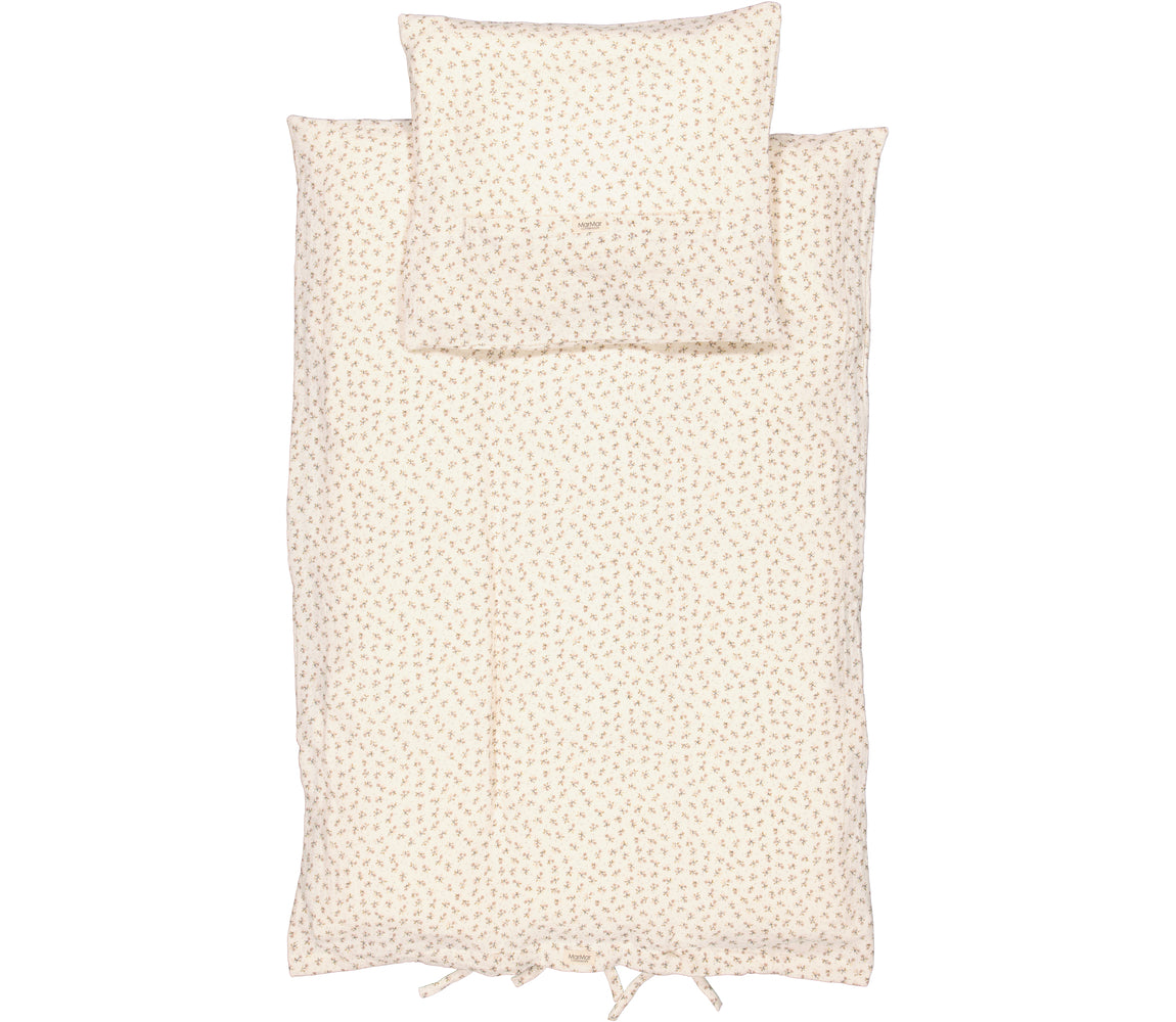 Muslin - Soft and lightly woven cotton quality - 100% Natural material and breathable quality - Gets a crepe structure after washing - Duvet cover measures 70x100cm - Pillowcase measures 40x45cm - Produced in India - Color: Petite Fleur - The colors in the print match modal styles in the color Powder Taupe - Style No.: 101-363-04