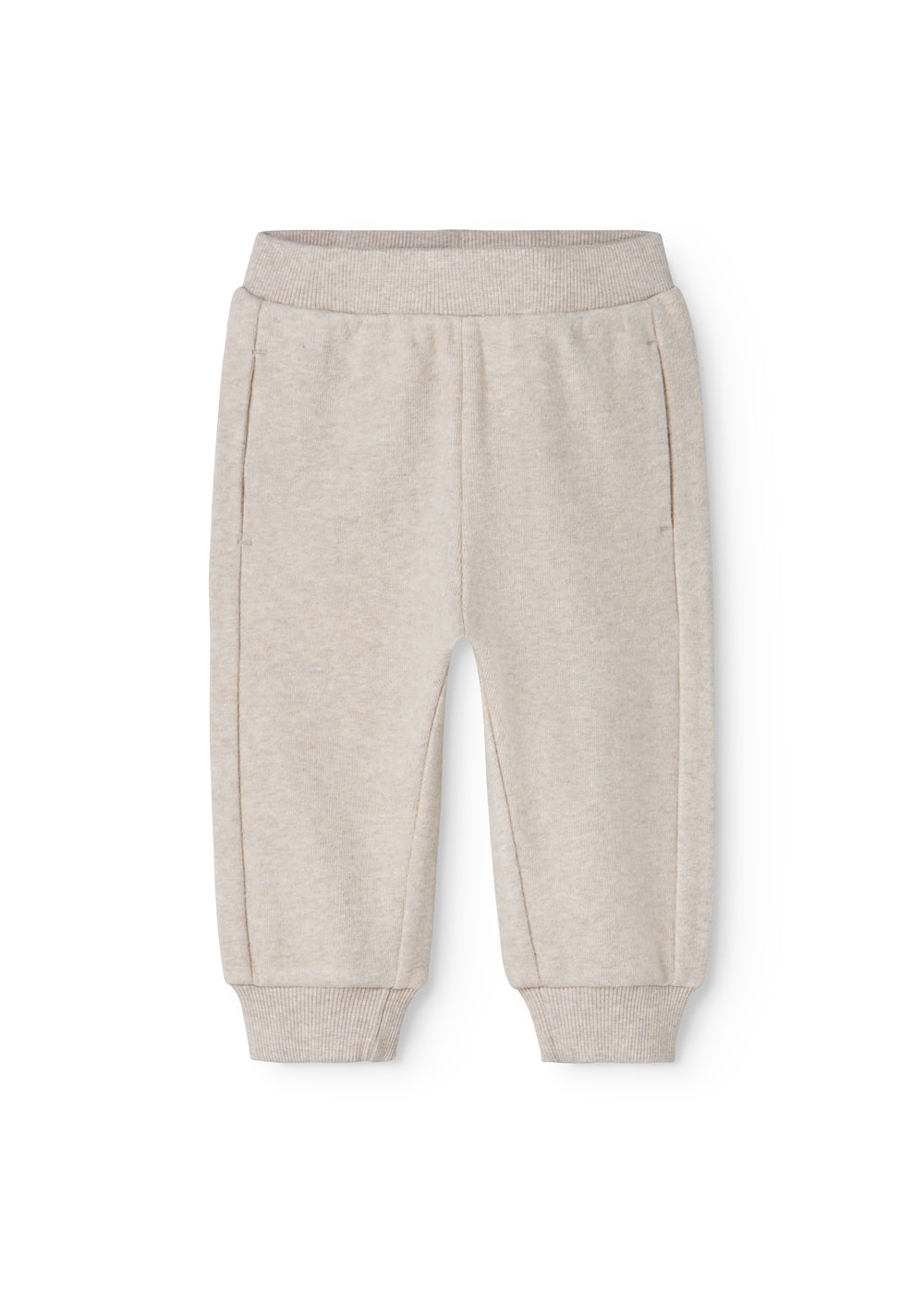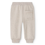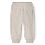 Beige baby sweatpants with elastic waist.