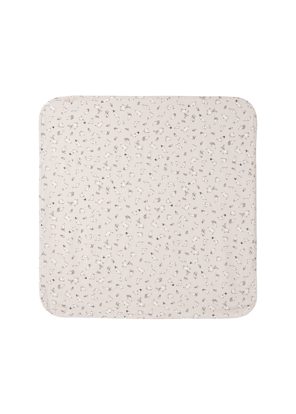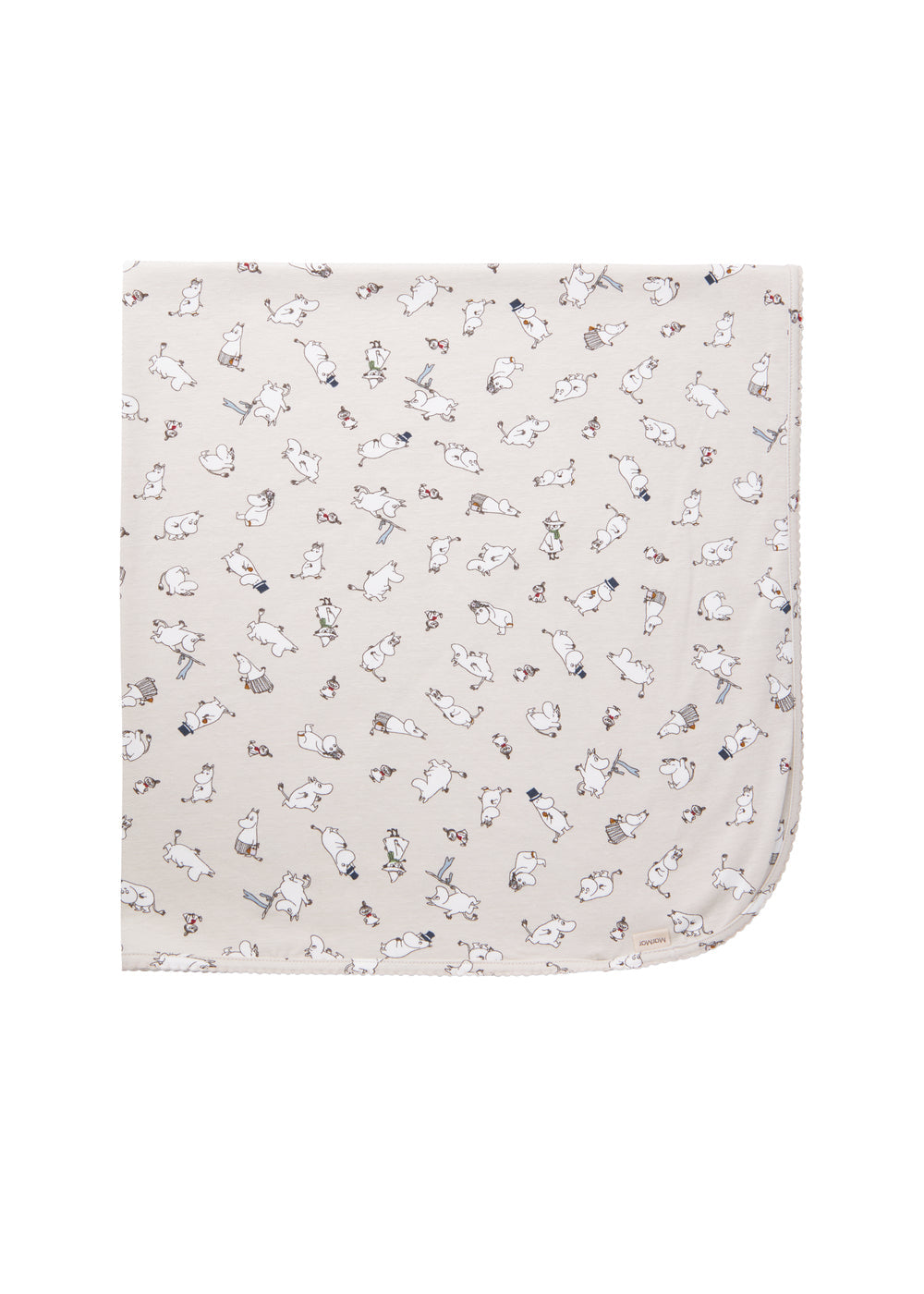 Baby blanket with rounded corners. The blanket measures 80 x 80 cm. and has a nice Moomin print. The blanket is soft, stretchy and comfortable.