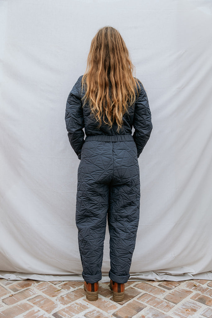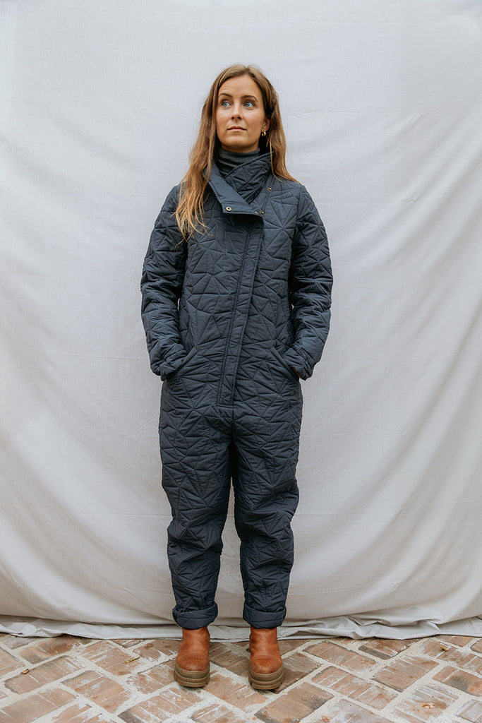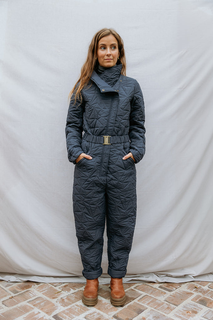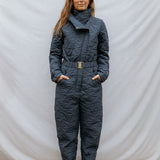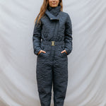 Thermal suit with a slim fit and asymmetrical zipper closure. The suit has 2 side pockets and 1 back pocket. The suit has a large collar and an included elastic belt.