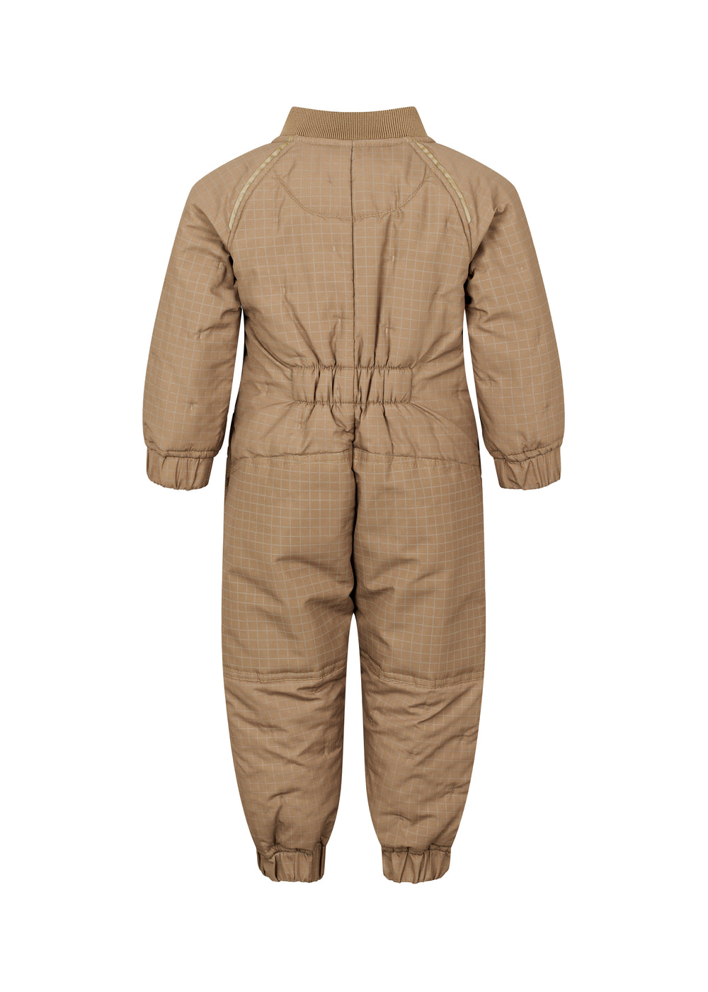 Bagside af brunternet termodragt til baby med elastik i taljen