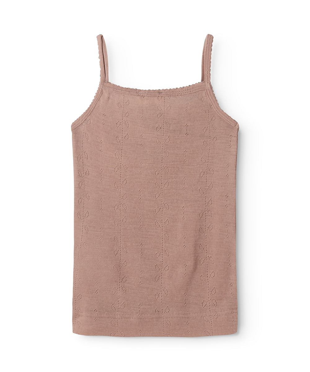 Strap Vest, Wool Pointelle Undershirt - Burnt Rose