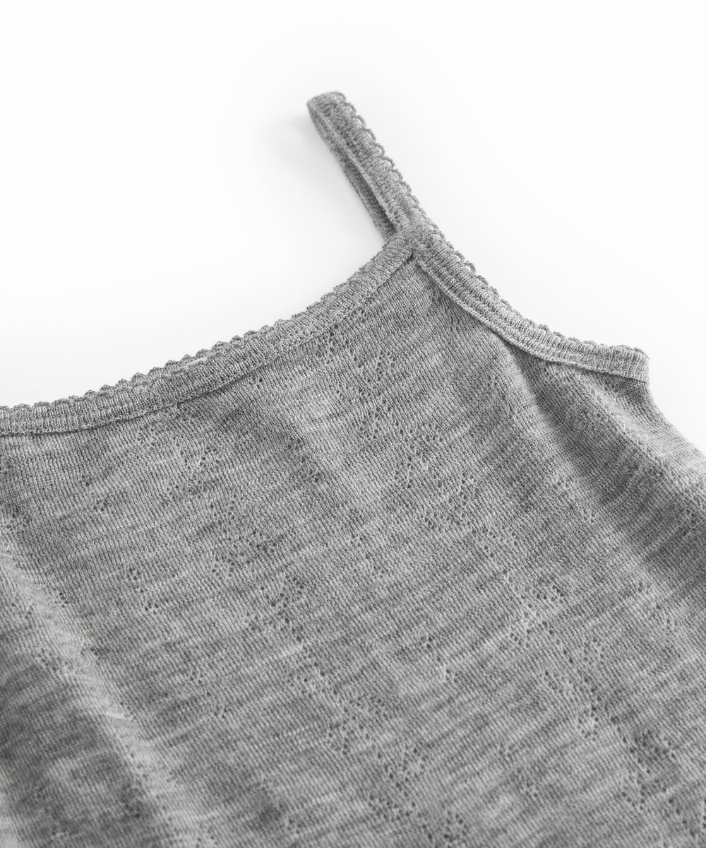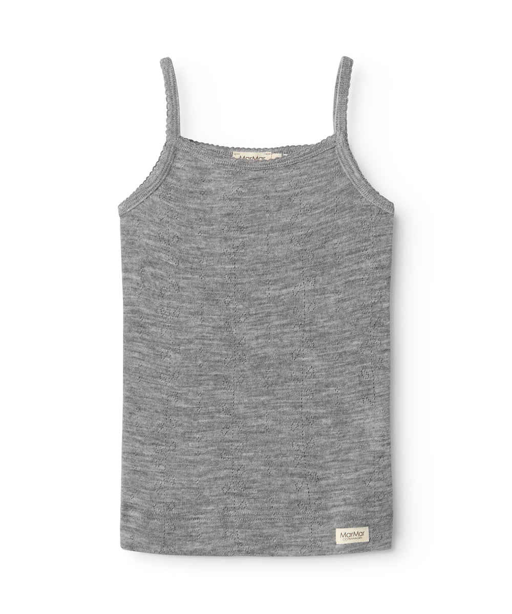 Strap Vest, Wool Pointelle Undershirt - Grey Melange