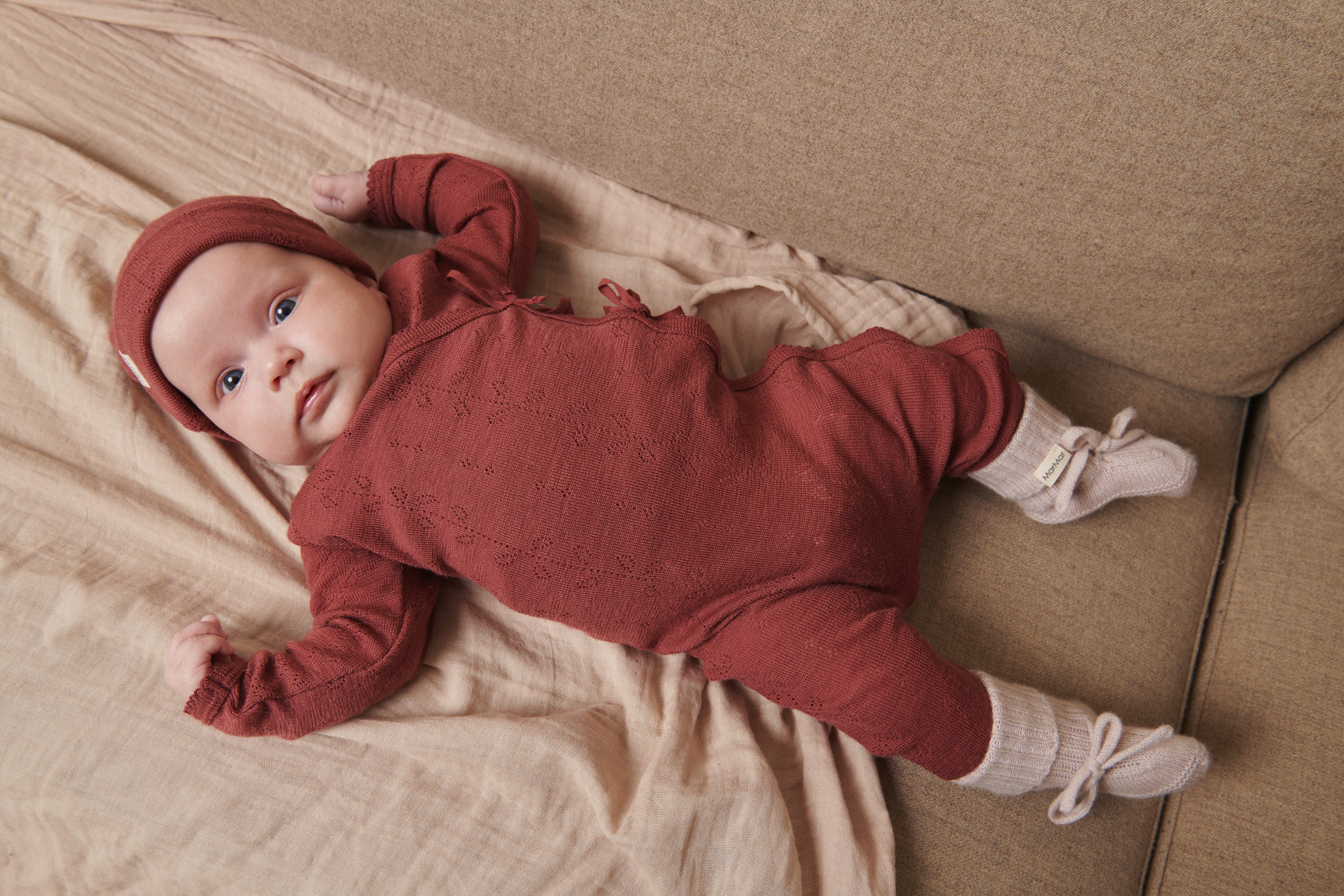 Turtleneck, Wool Pointelle Jumpsuit - Berry Blend