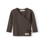 Long-sleeved blouse for newborns with wrap-around closure. Closes with snaps and ties.