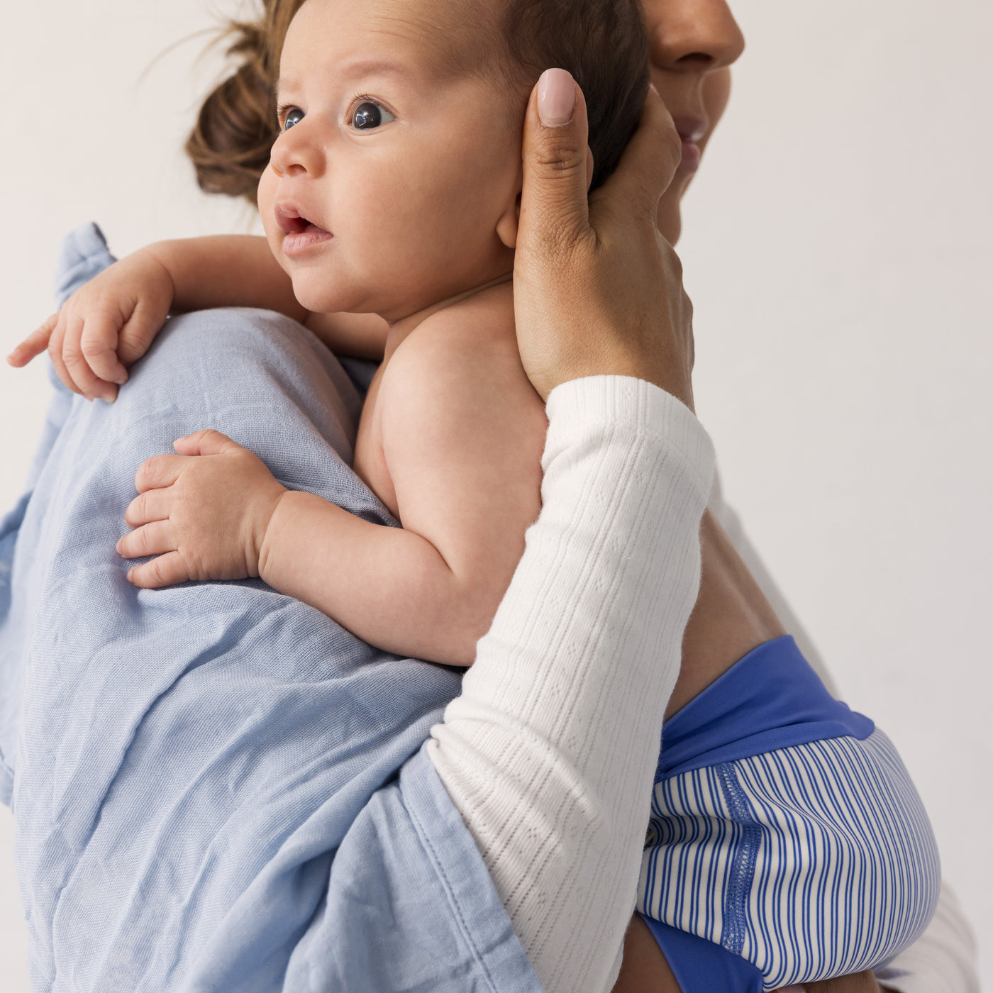 Bodies, blouses, and rompers are designed with wrap-around closures, so the clothes are as easy to get off as on the newborn.