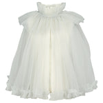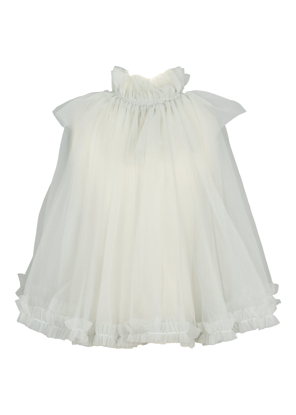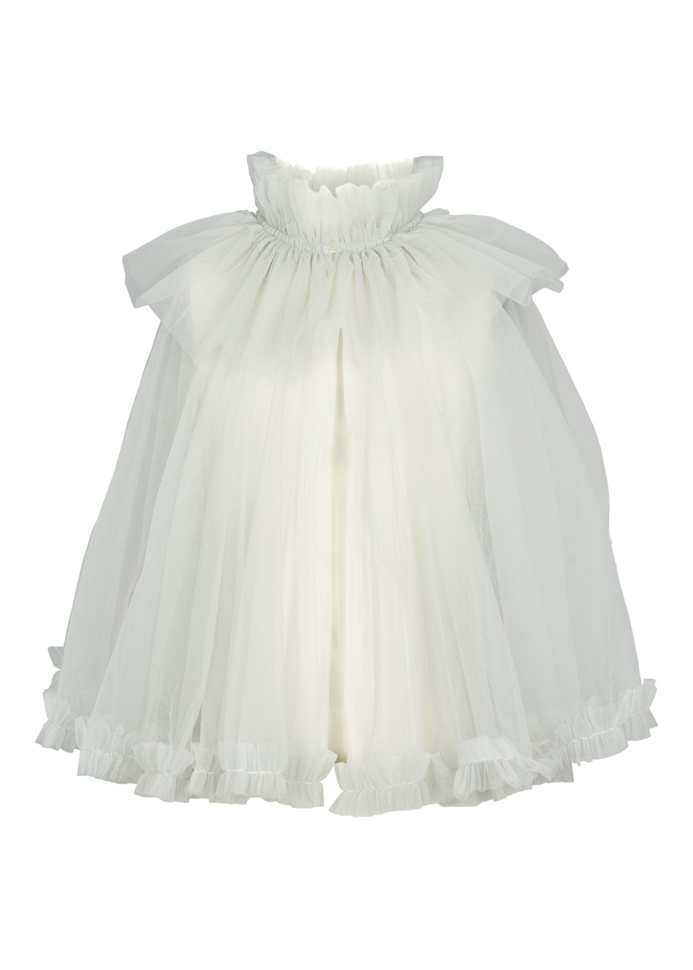 Beautiful and festive cape with many layers of tulle for volume. The cape has a button closure at the front and elastic at the neck for a comfortable fit.
