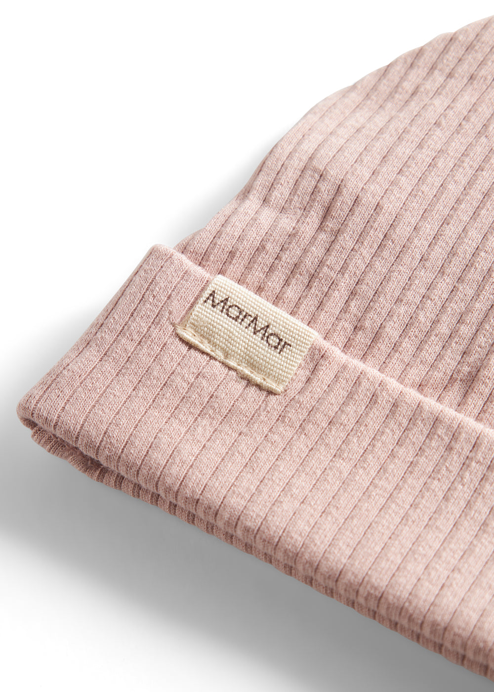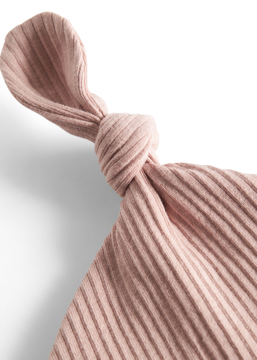 Simple and comfortable little hat for the little ones with a brim that can be folded down and with a cute knot on top. The hat is soft, holds its shape and color and has elastane in it which makes it stretchy and comfortable to wear.