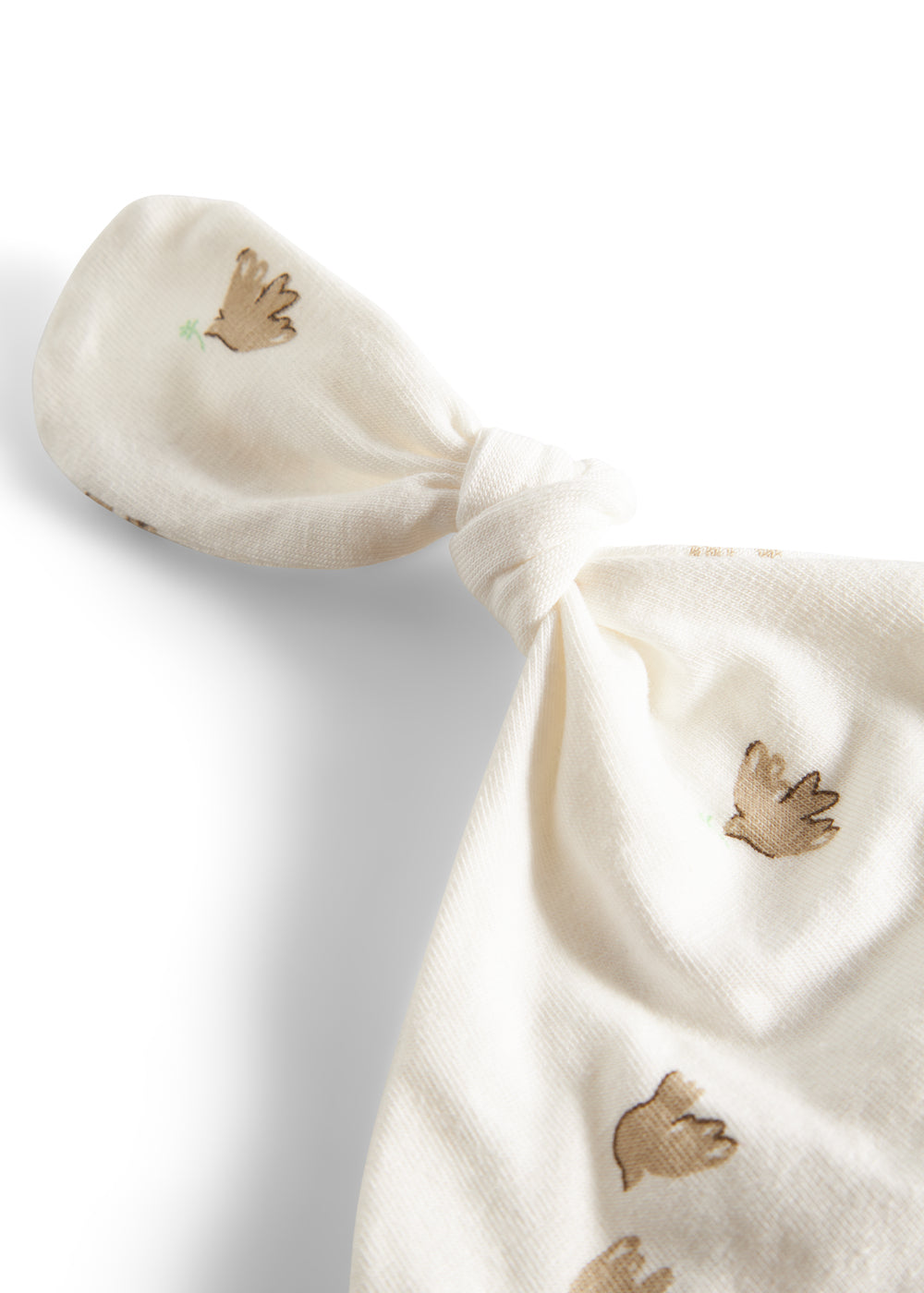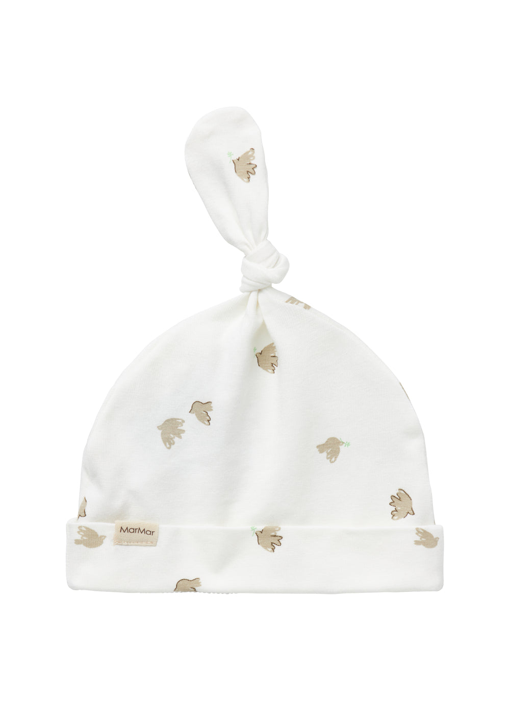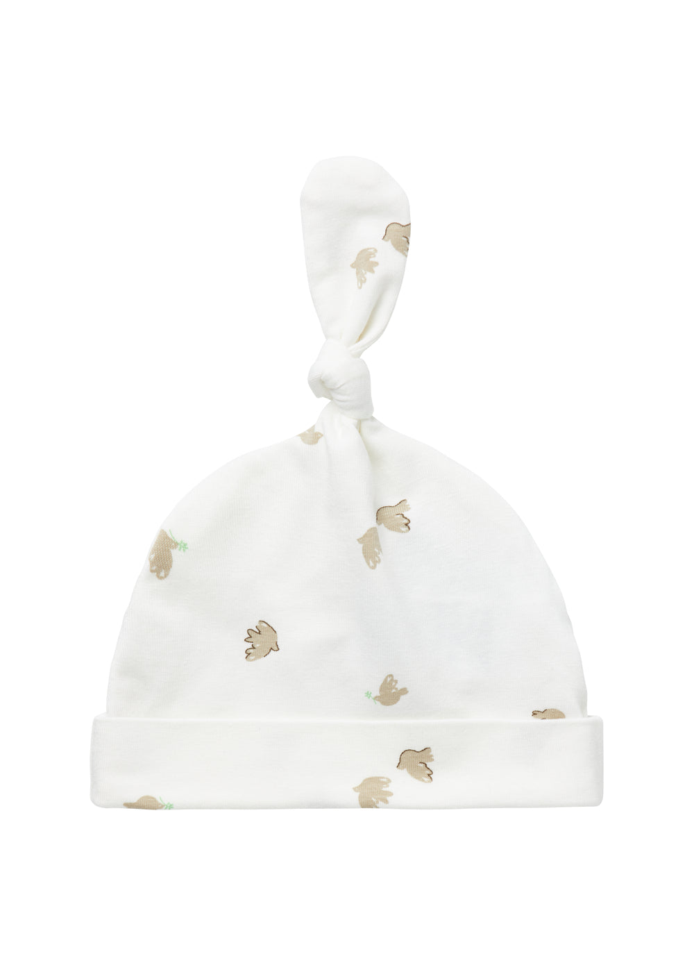Small hat for newborns with a brim that can be folded down and a cute knot at the top.