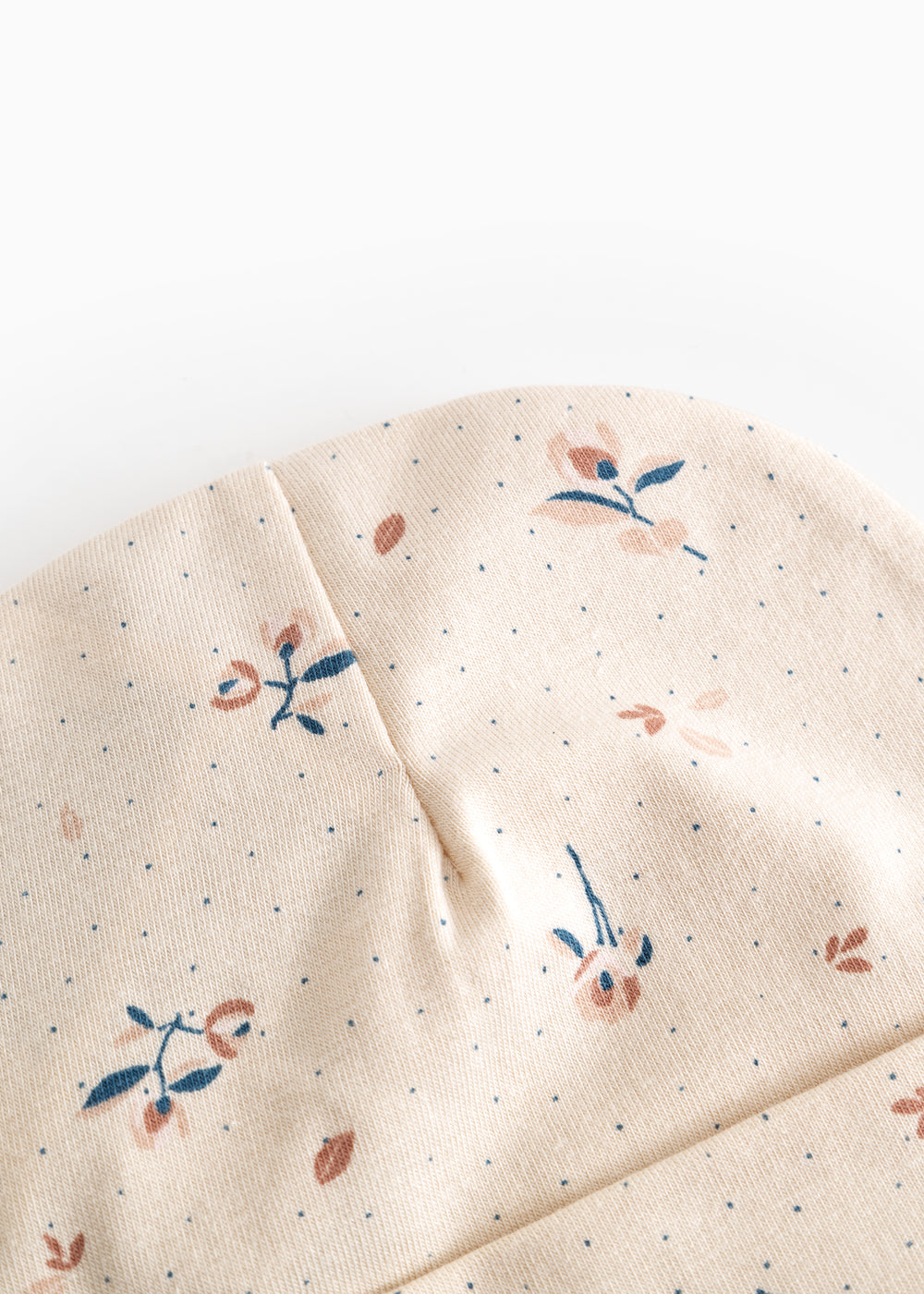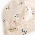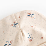 Small hat for newborns with a brim that can be folded up or down. The hat has a cute print and is soft, stretchy and comfortable to wear.