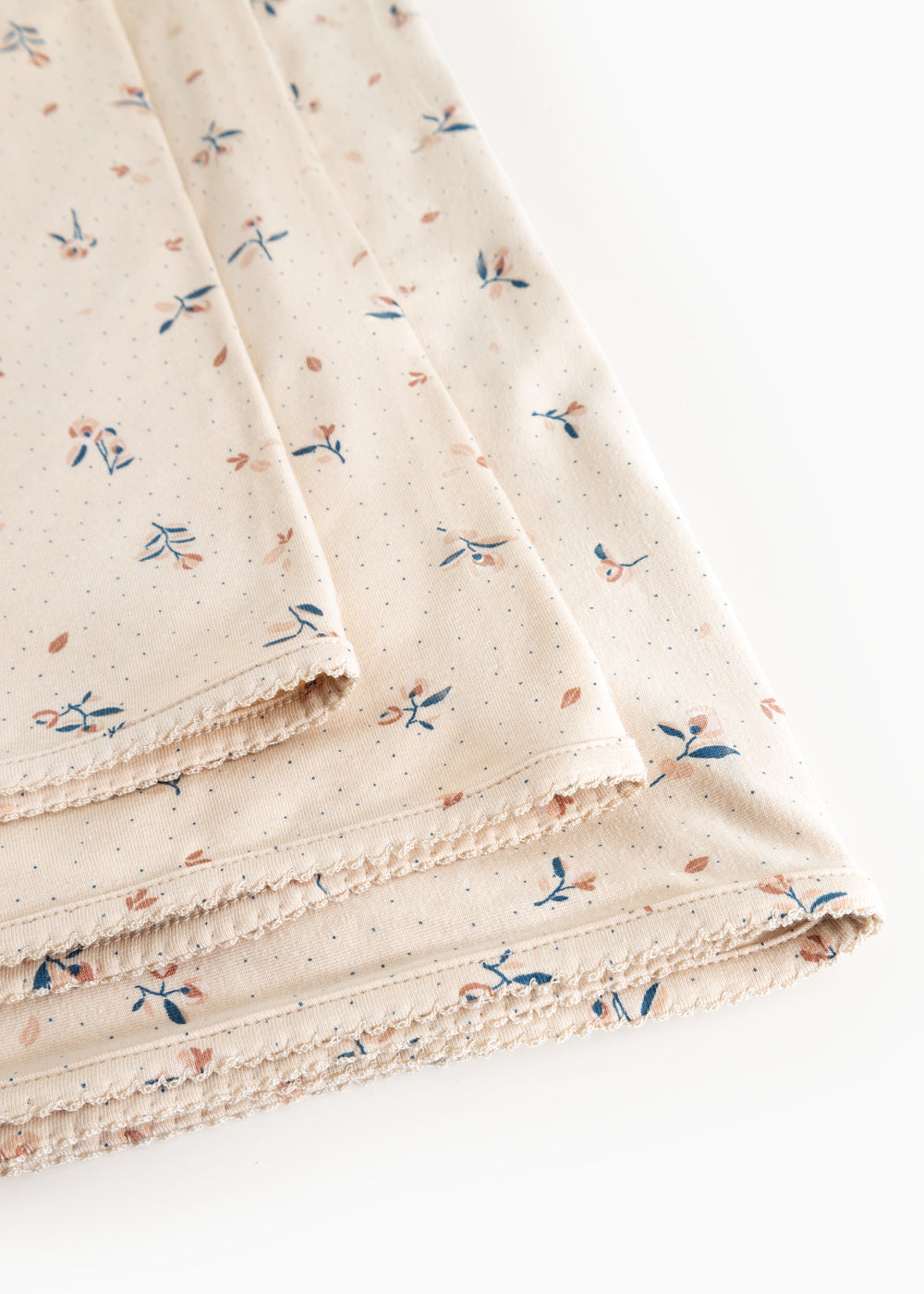Baby blanket with rounded corners, picot edges and a nice print. The blanket measures 80 x 80 cm and is soft, stretchy and comfortable to wear.