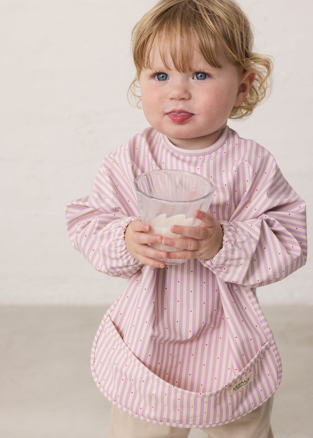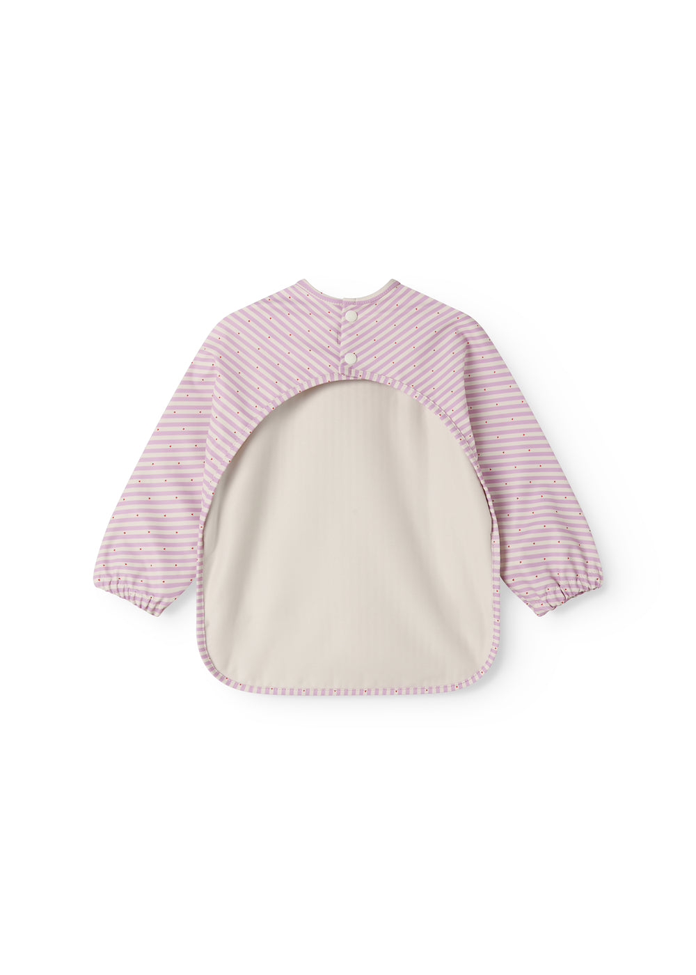 Long-sleeved dining apron with a practical pocket at the front, elastic at the wrists and snap closure at the neck. Water-repellent material that is easy to wipe off.