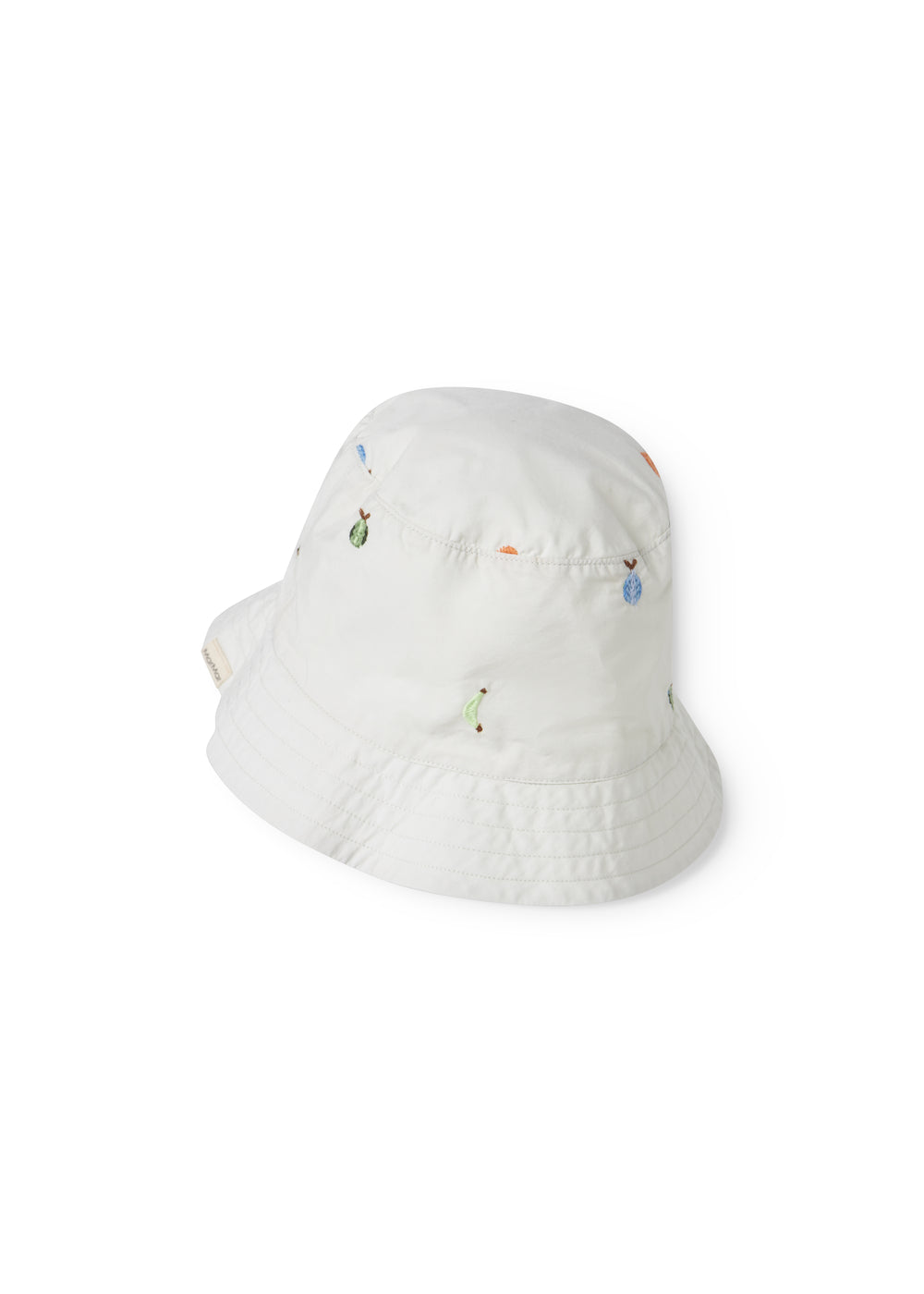 Bucket hat with a fine fruit embroidery, in a light and crispy cotton quality, which makes it comfortable to wear.