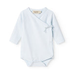 Long-sleeved bodystocking for newborns with wrap-around closure.